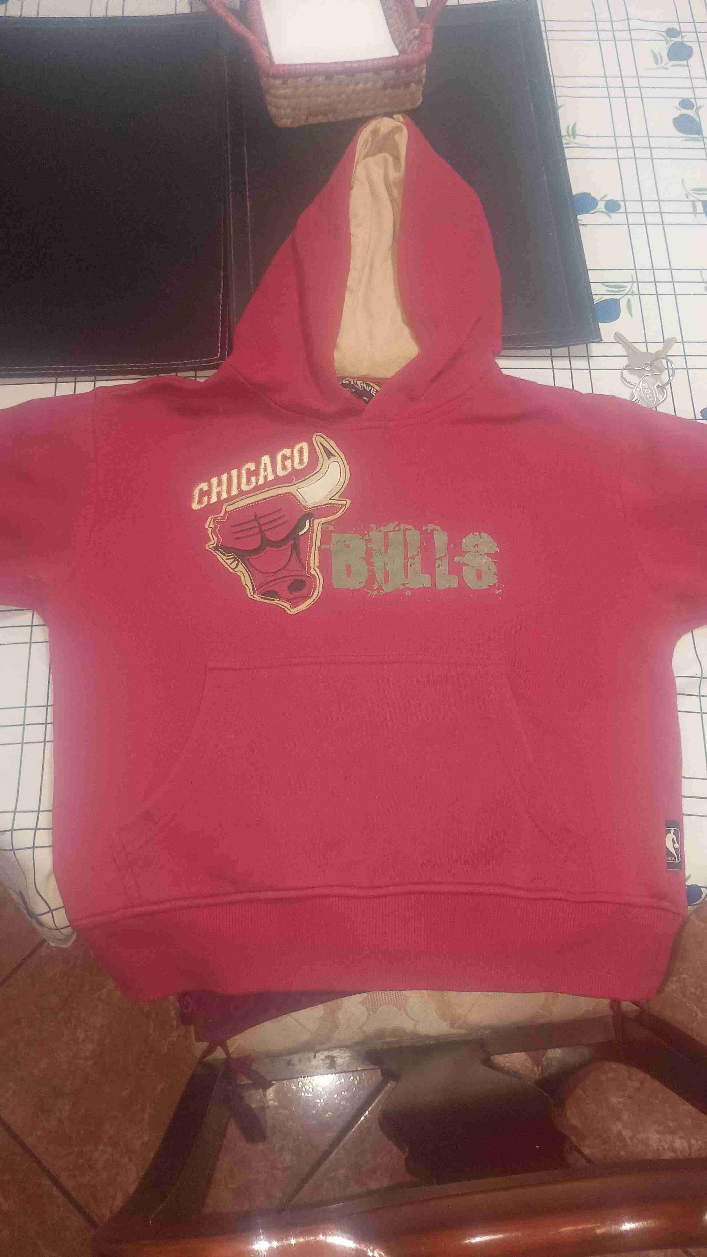 Polerón con capucha rojo con logo de Chicago Bulls. Ideal para días fríos, en buen estado general.