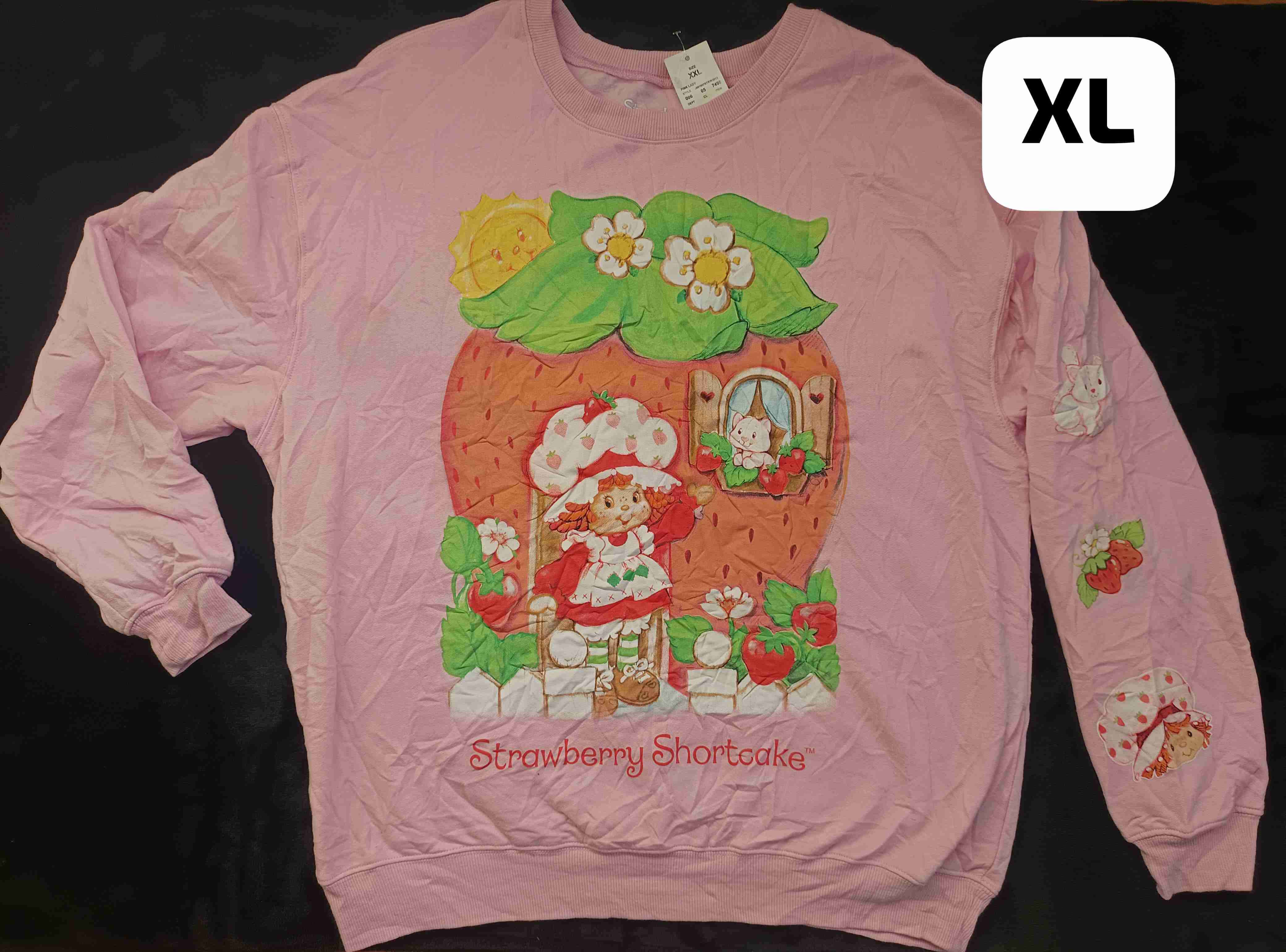 Polerón en color fucsia con diseño de Strawberry Shortcake. Ideal para fanáticos de lo retro. En buen estado general.