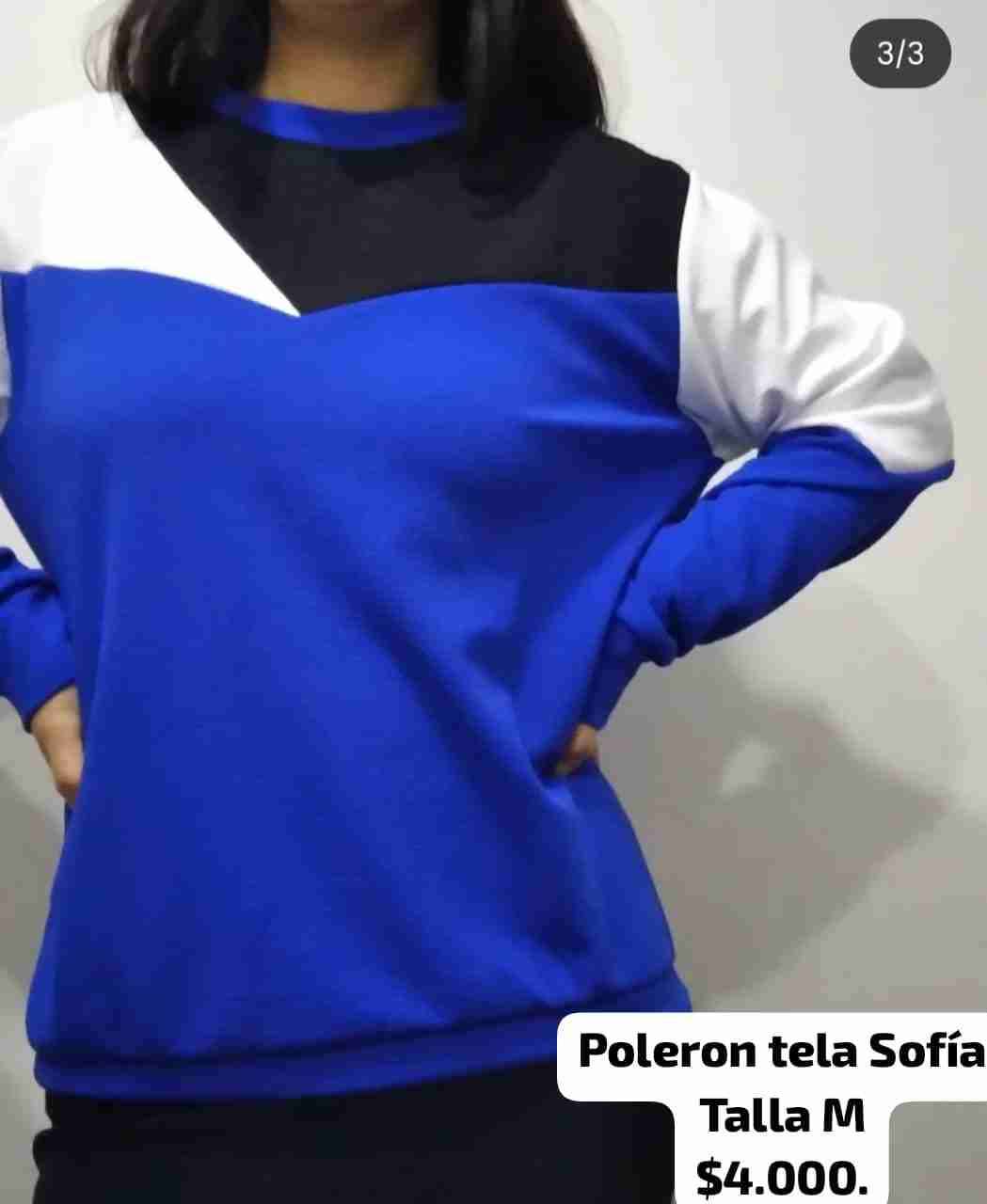 Polerón talla M en tonos azul, negro y blanco. Ideal para días frescos. Nuevo.