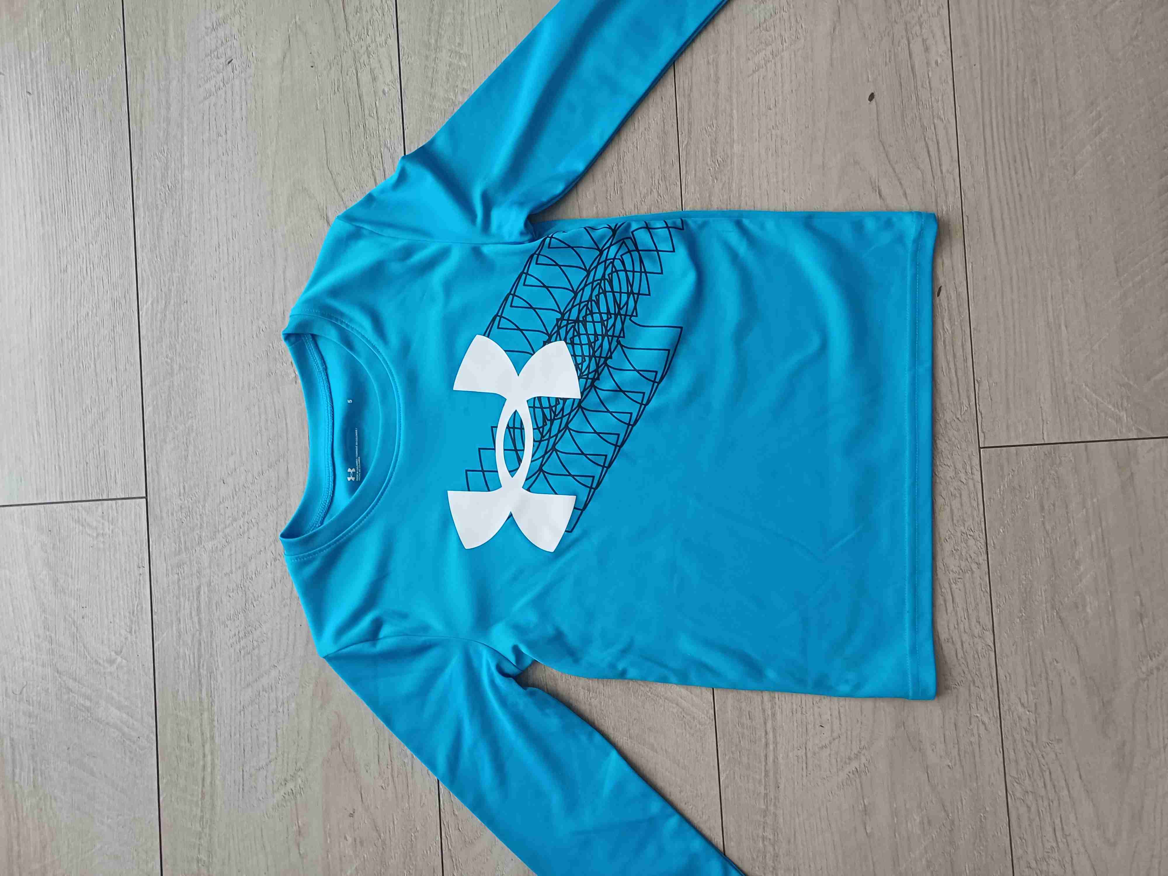Polera deportiva azul con logo frontal. Ideal para actividad física al aire libre. Buen estado general. Talla 5
