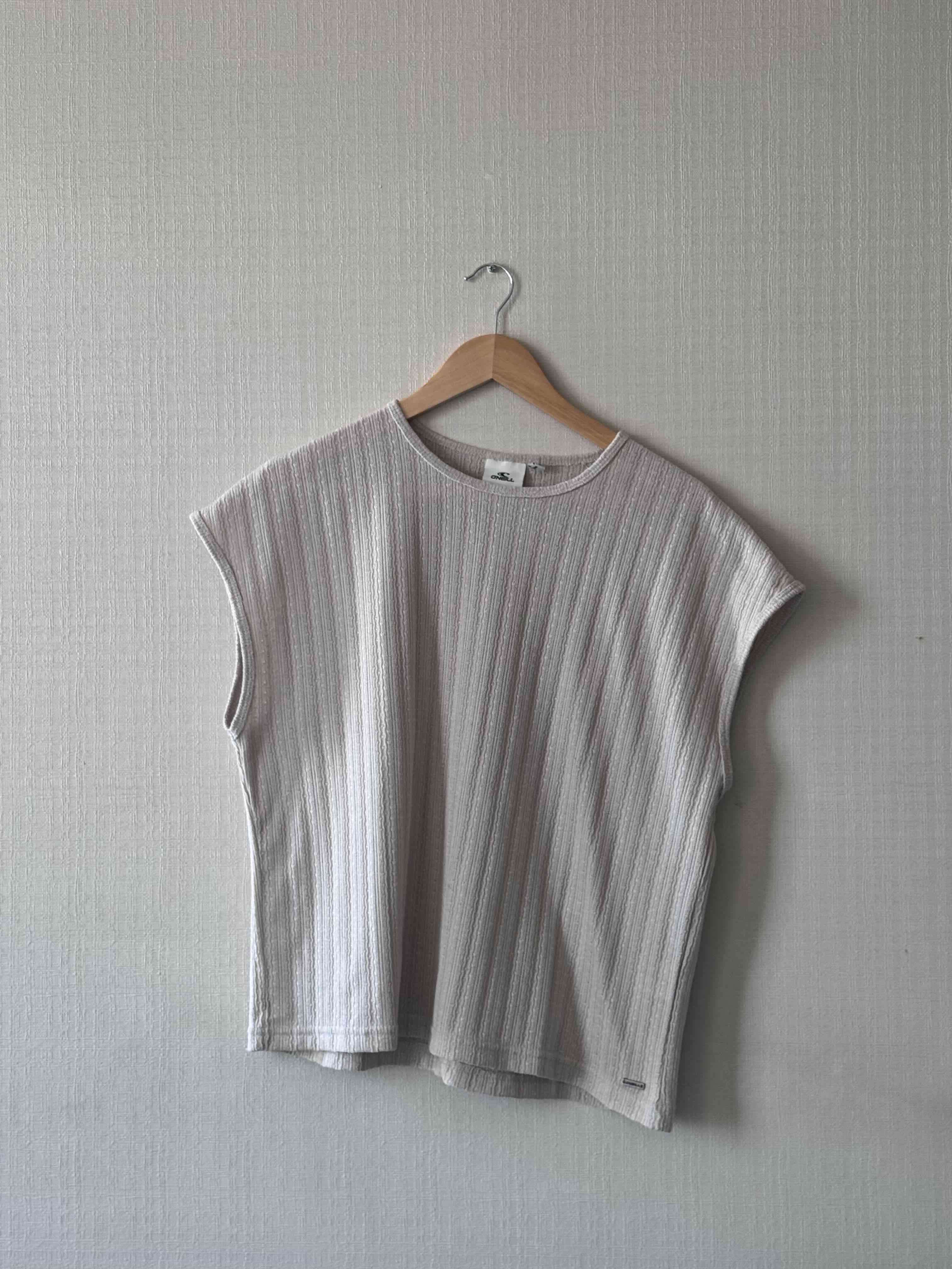 Polera sin mangas de algodón, color beige claro, en buen estado. Ideal para días casuales.