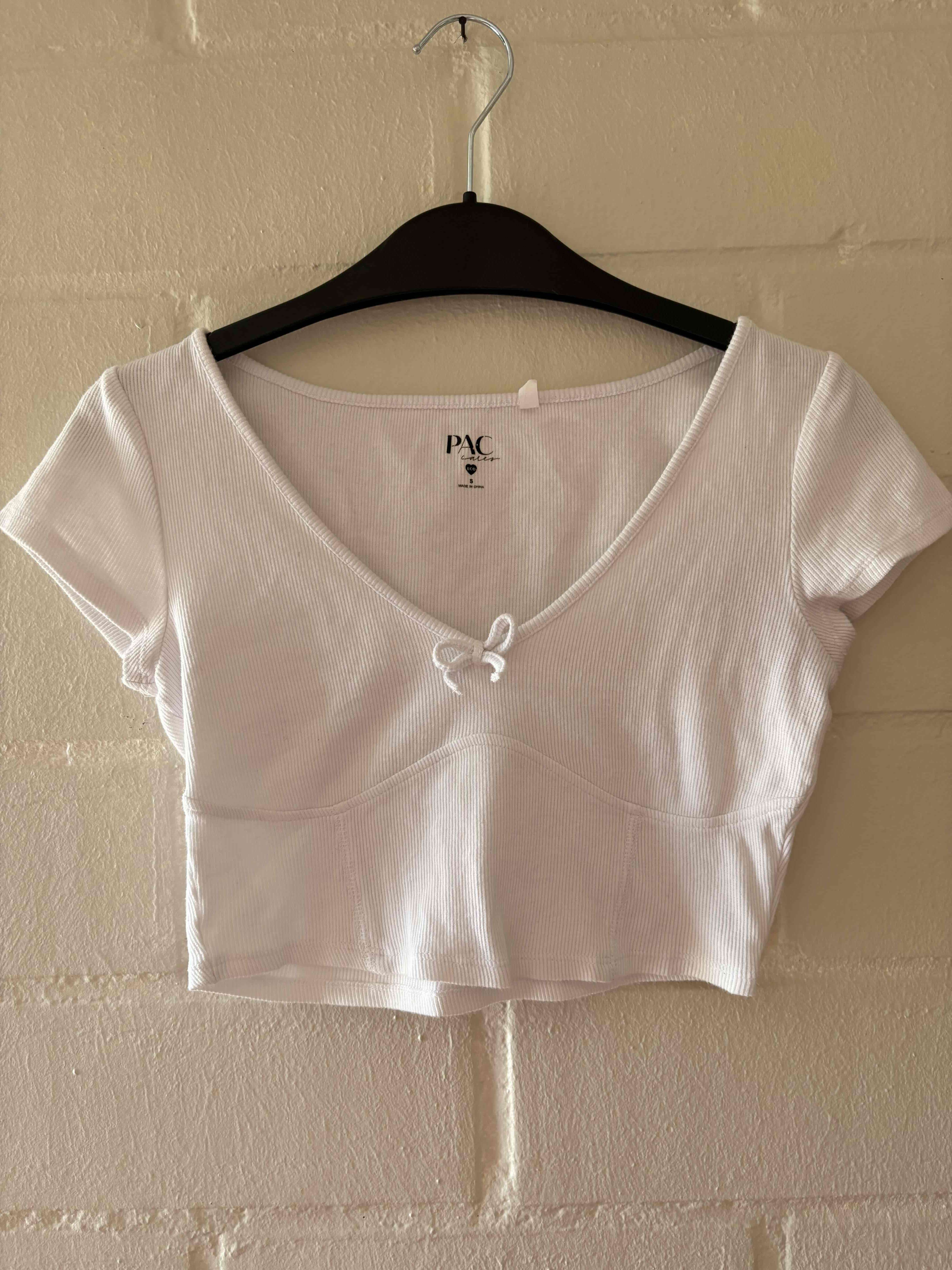 Polera blanca con liston, ideal para estilo coquette. En buen estado, sin uso talla S.🎀🎀