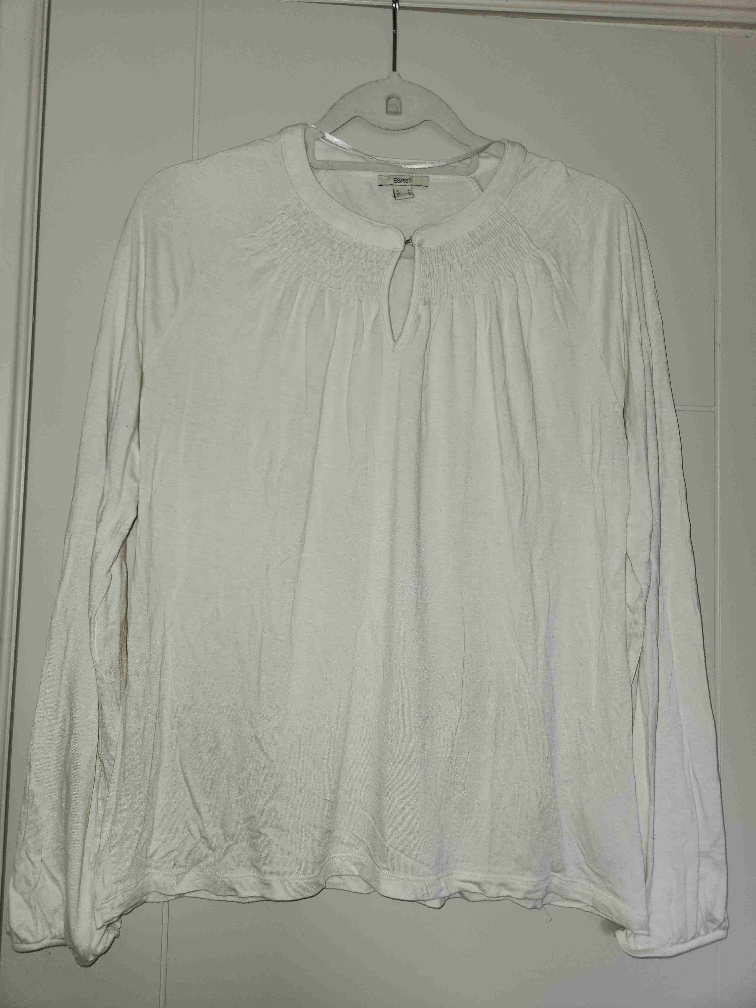 Polera Espirit blanca de manga larga con diseño delicado, en buen estado general. Perfecta para un look casual y cómodo.