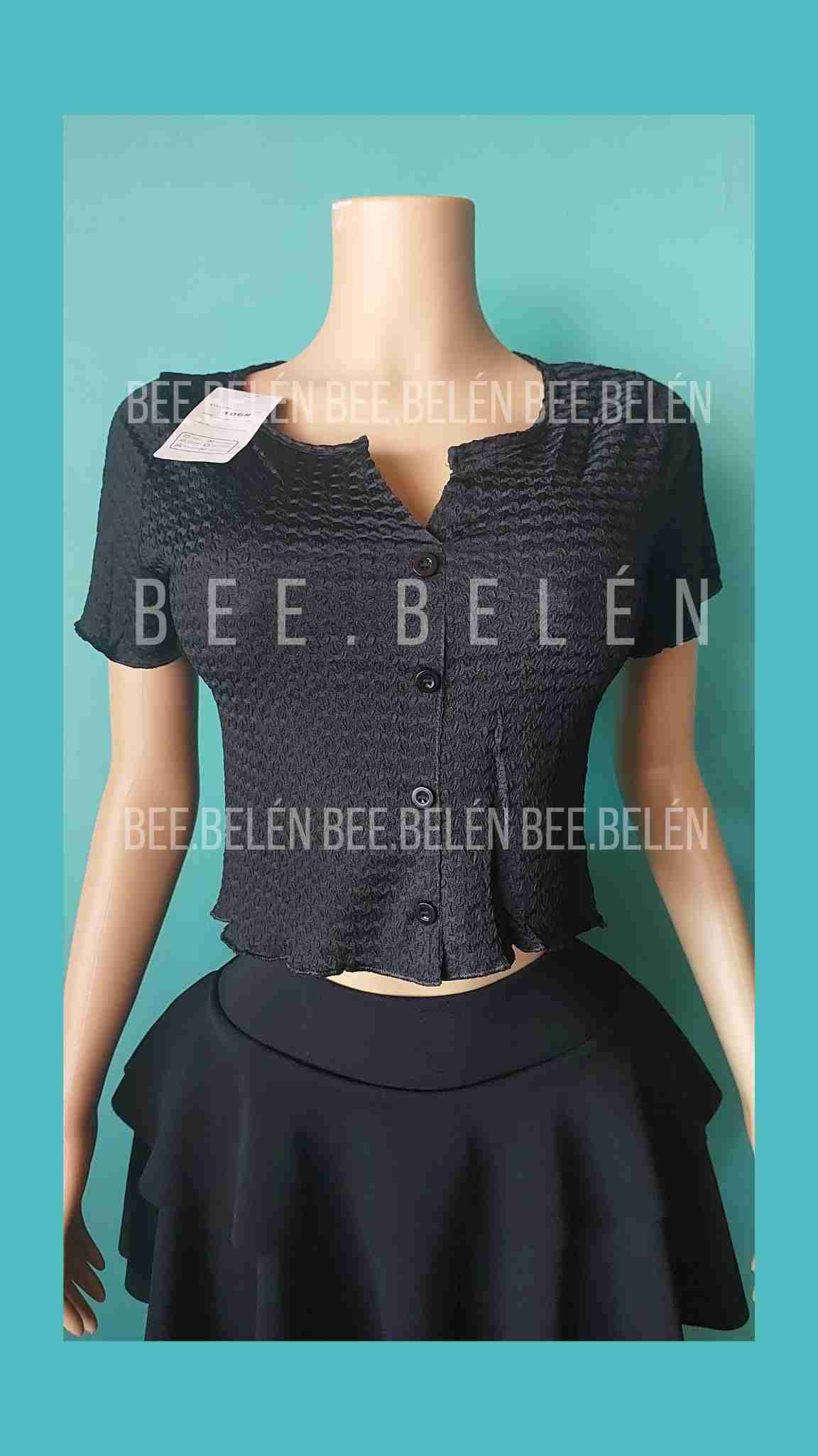 Polera crop color negro, con botones fantasía cuello en v, talla estandar que abarca xs s m, nuevo