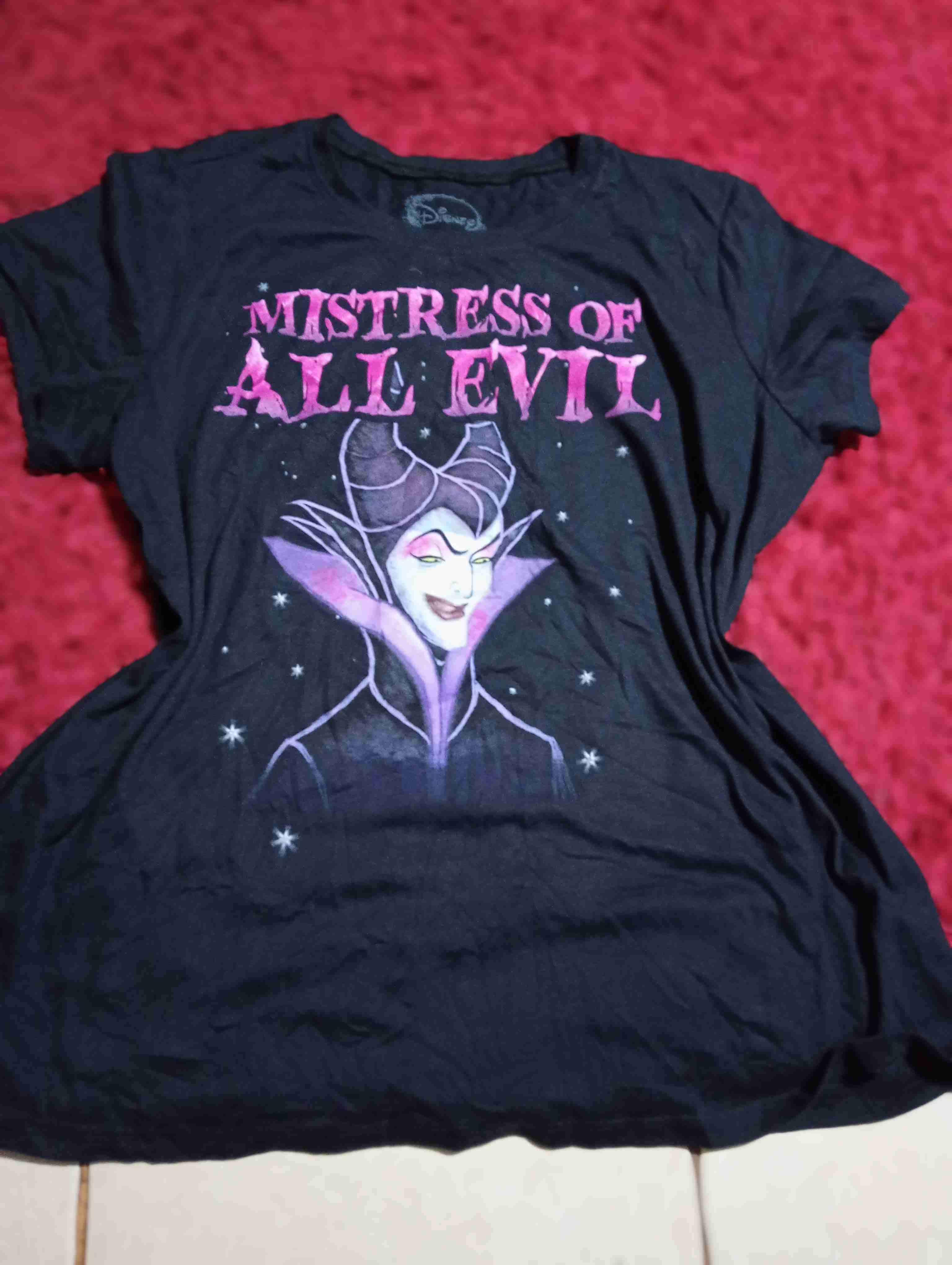 Polera negra con diseño de Maléfica de Disney. Ideal para fans, en buen estado general. Talla XL oversize