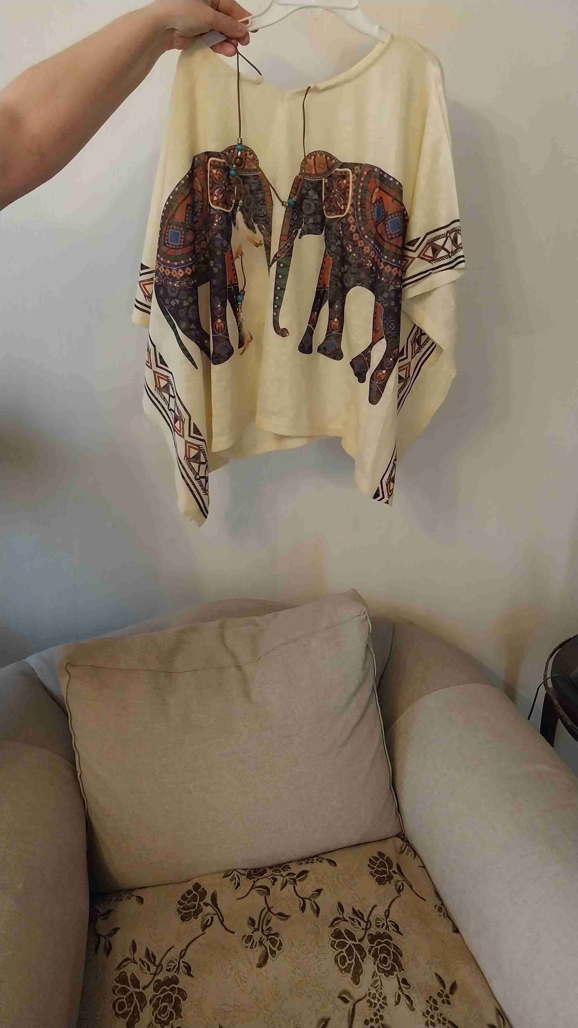Polera beige con diseño de elefantes, estilo casual y relajado.