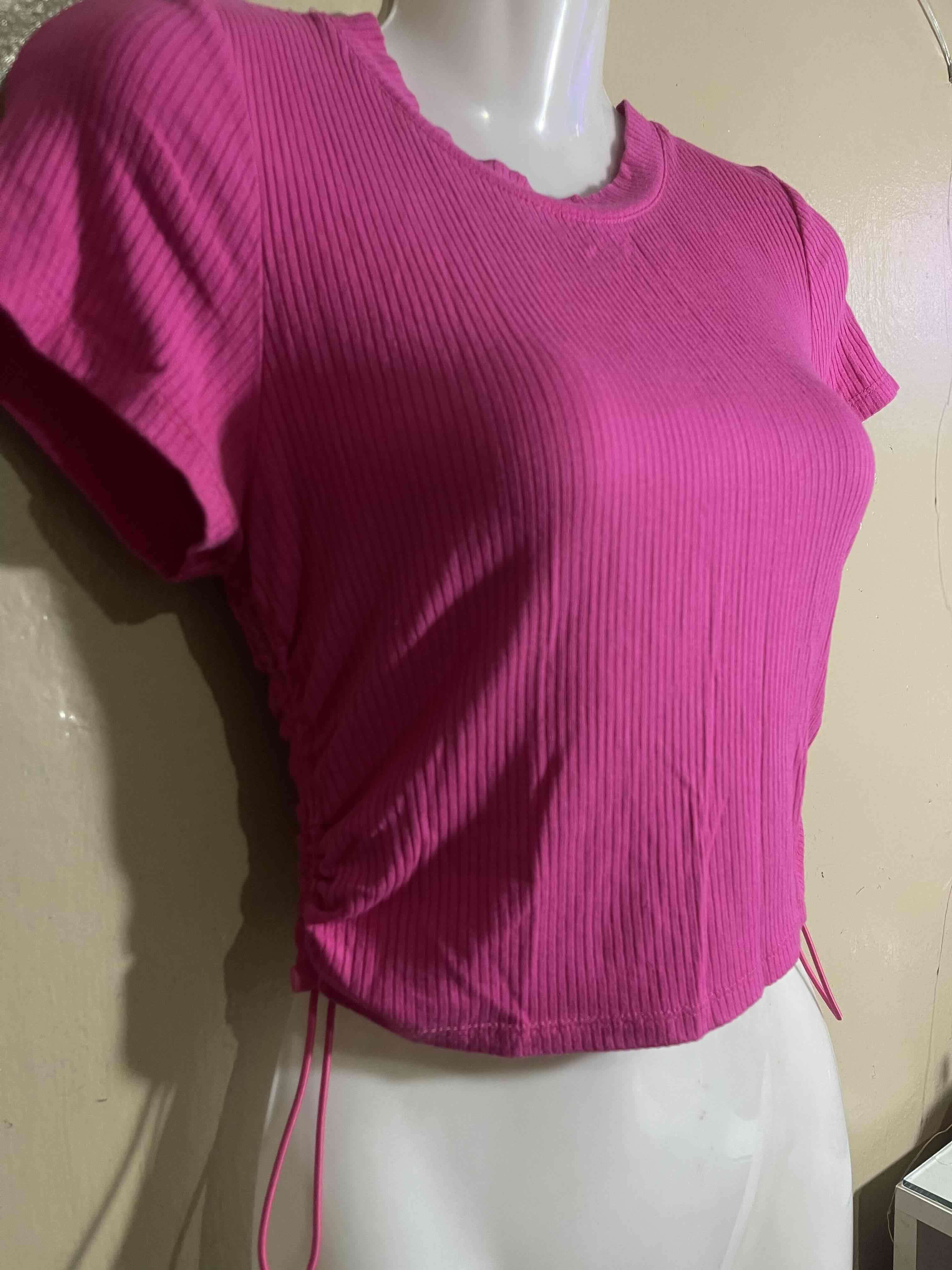 Polera de color fucsia con textura acanalada. Ideal para un look casual y fresco.