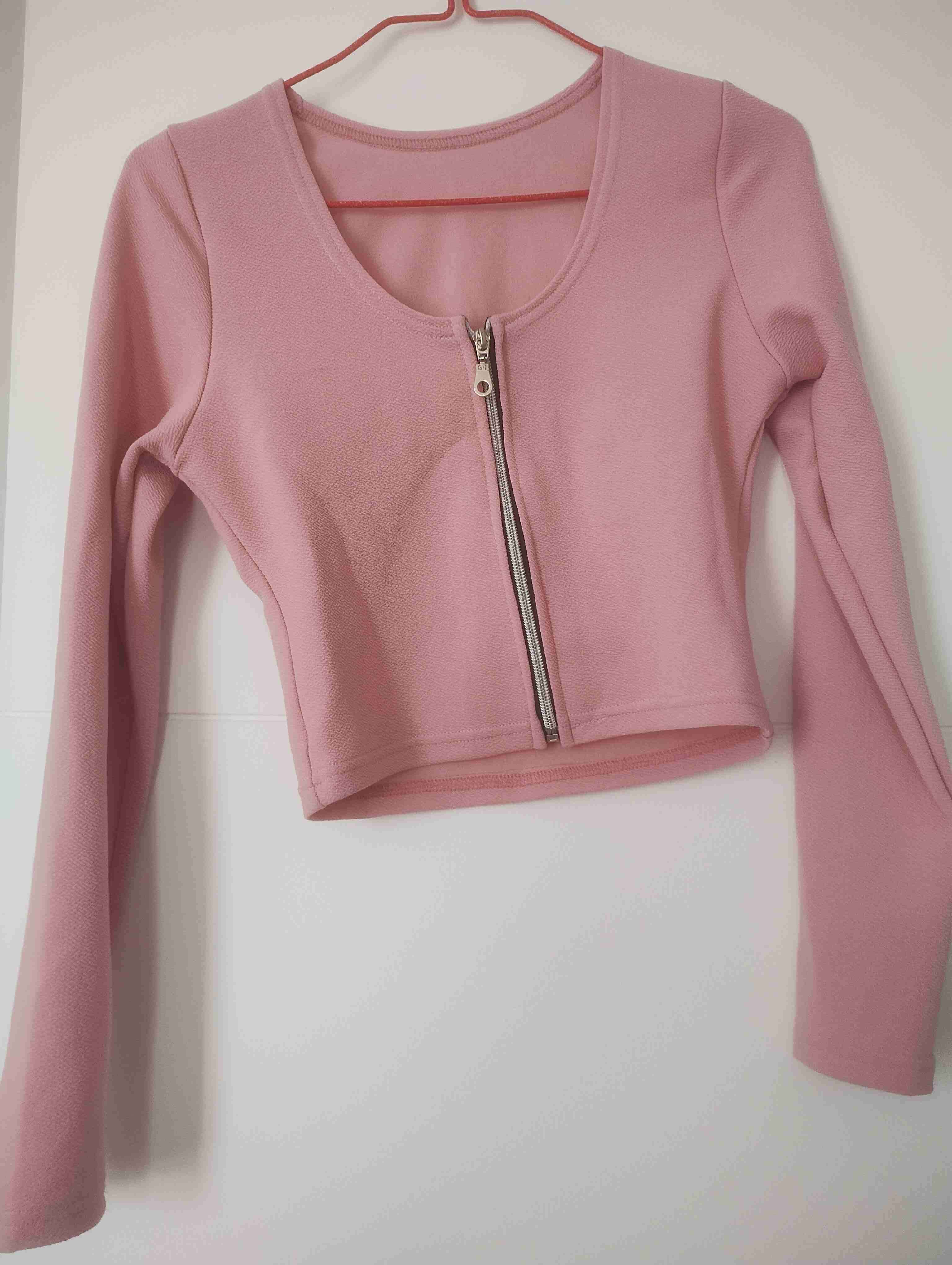 Polera manga larga rosa con cierre