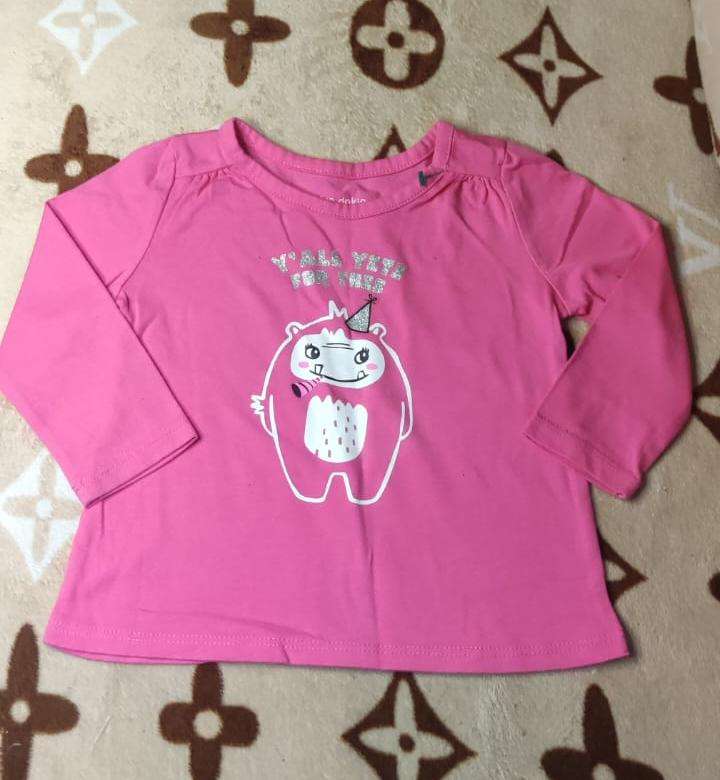 Polera infantil rosa con diseño de caricatura, ideal para días frescos. Se ve en excelente estado. Talla 12 meses.