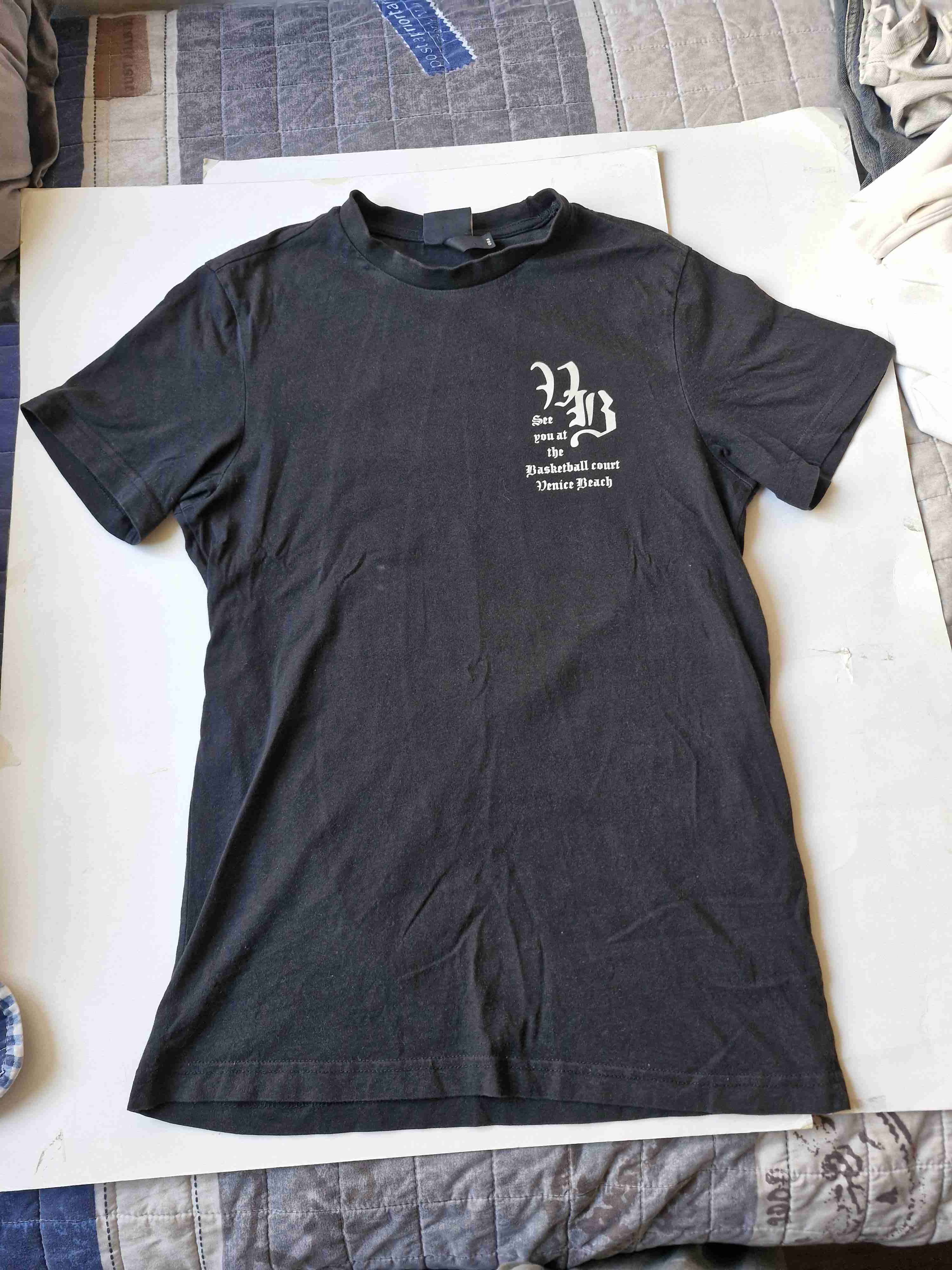 Polera negra con diseño frontal estilo urbano. En buen estado general, ideal para uso casual.