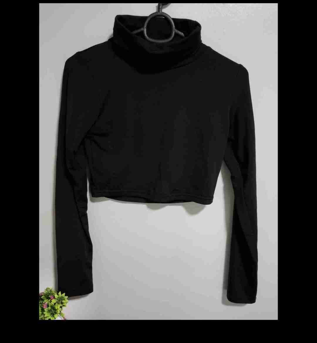 Polera negra de manga larga con cuello alto. Ideal para el otoño. Buen estado general.