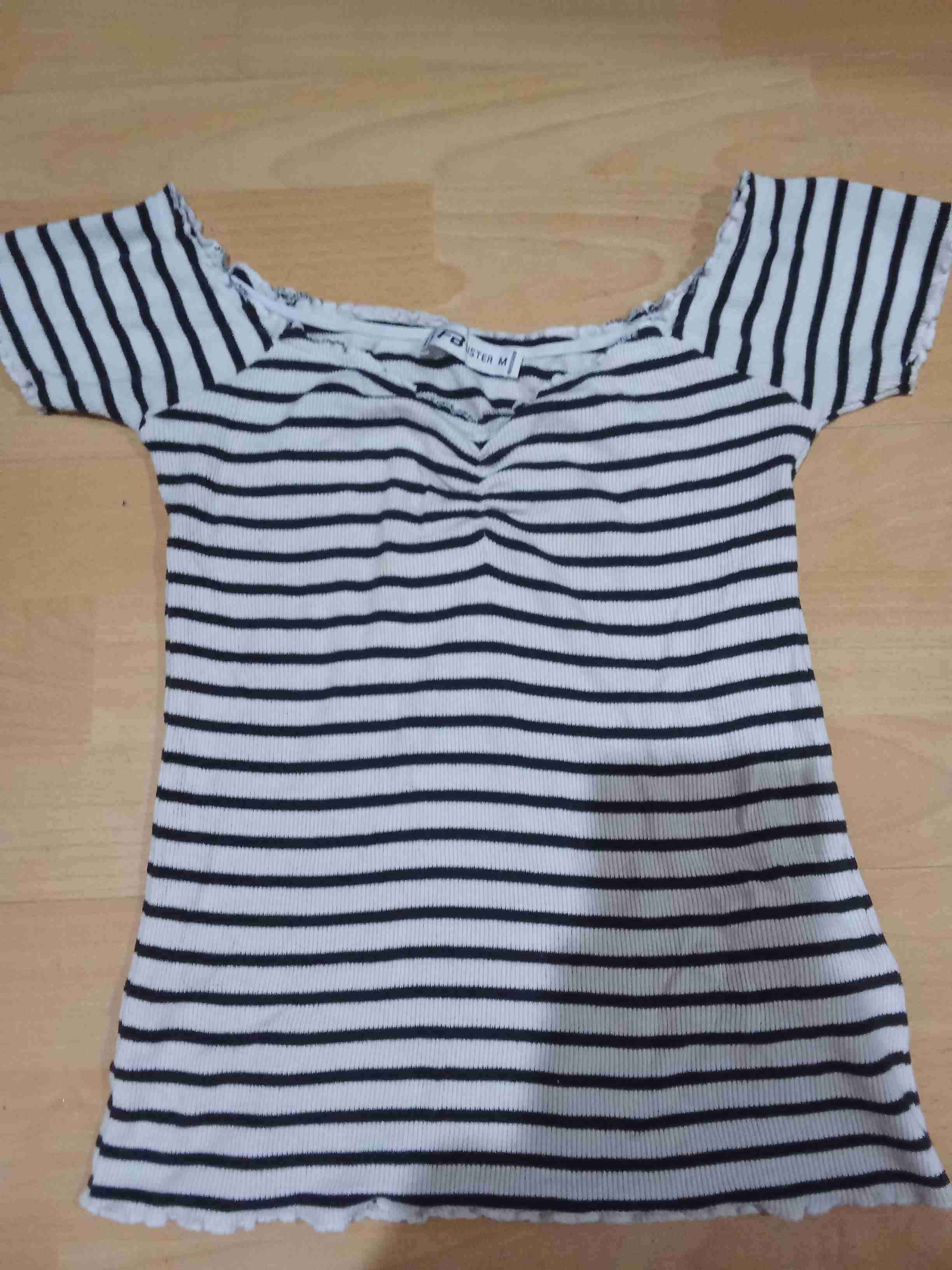 Polera rayada blanca y negra elásticada talla m