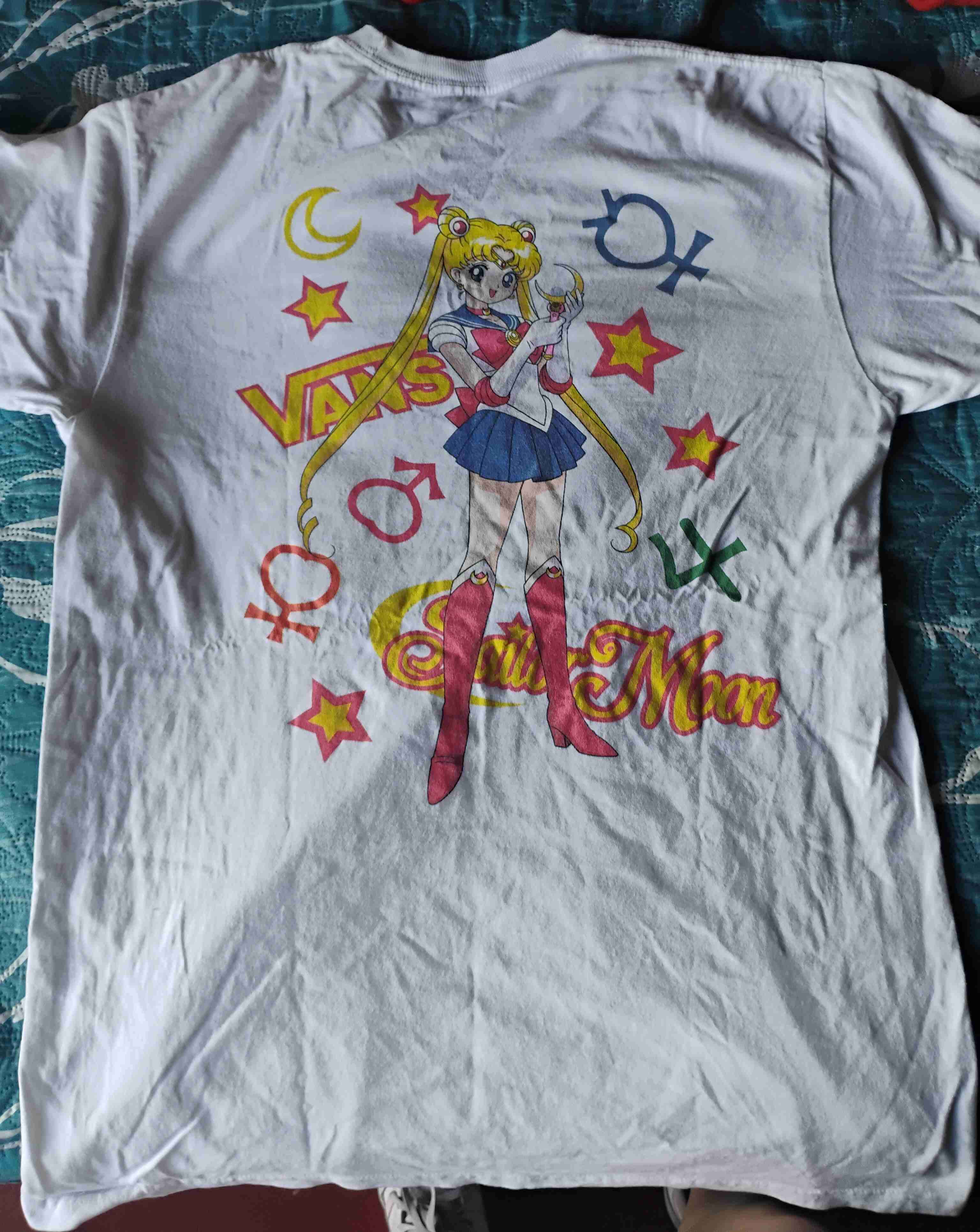 Polera blanca de Vans con diseño de Sailor Moon. Ideal para fans del anime, en buen estado y estilo juvenil. Está en buen estado, es de colección limitada. Talla M