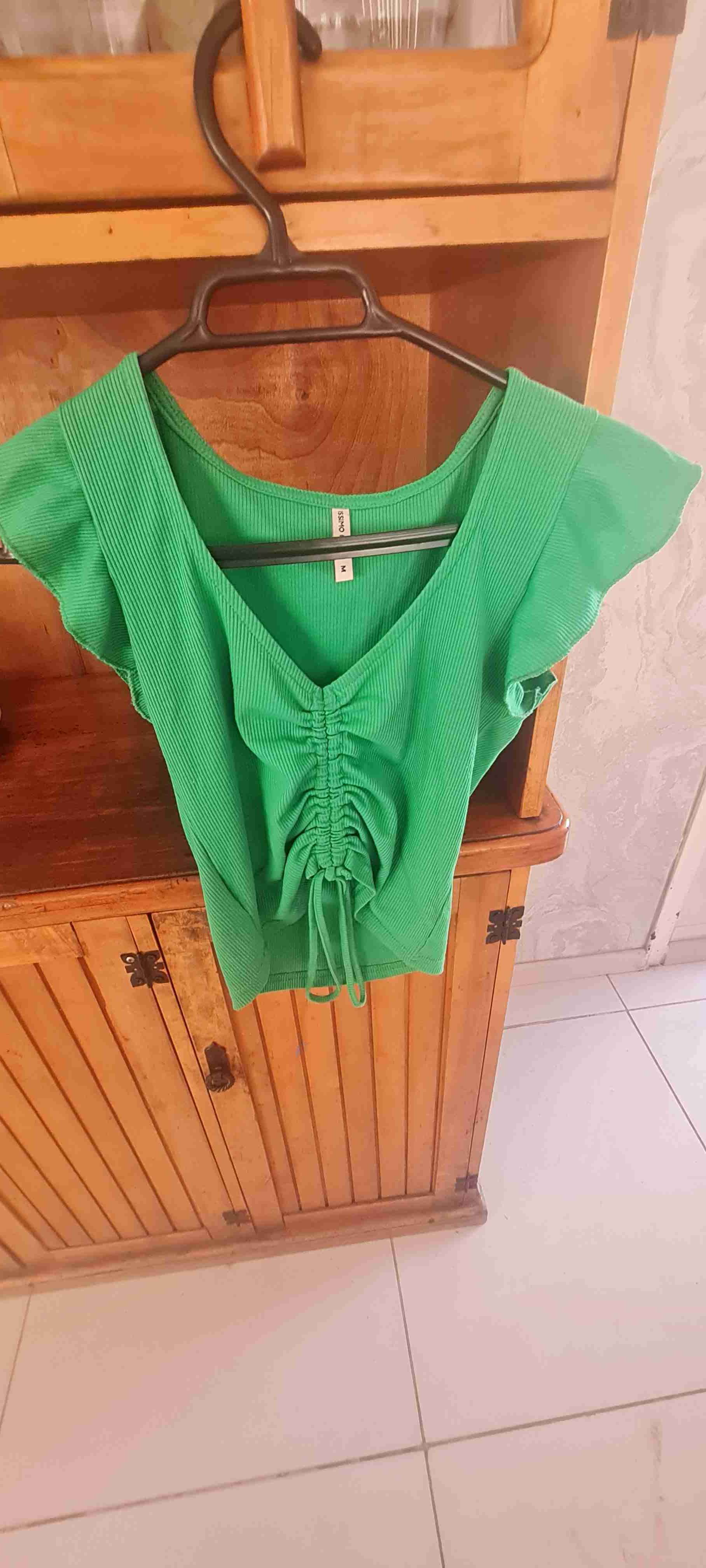 Polera verde de mujer con diseño fruncido al frente, ideal para el verano. En buen estado.