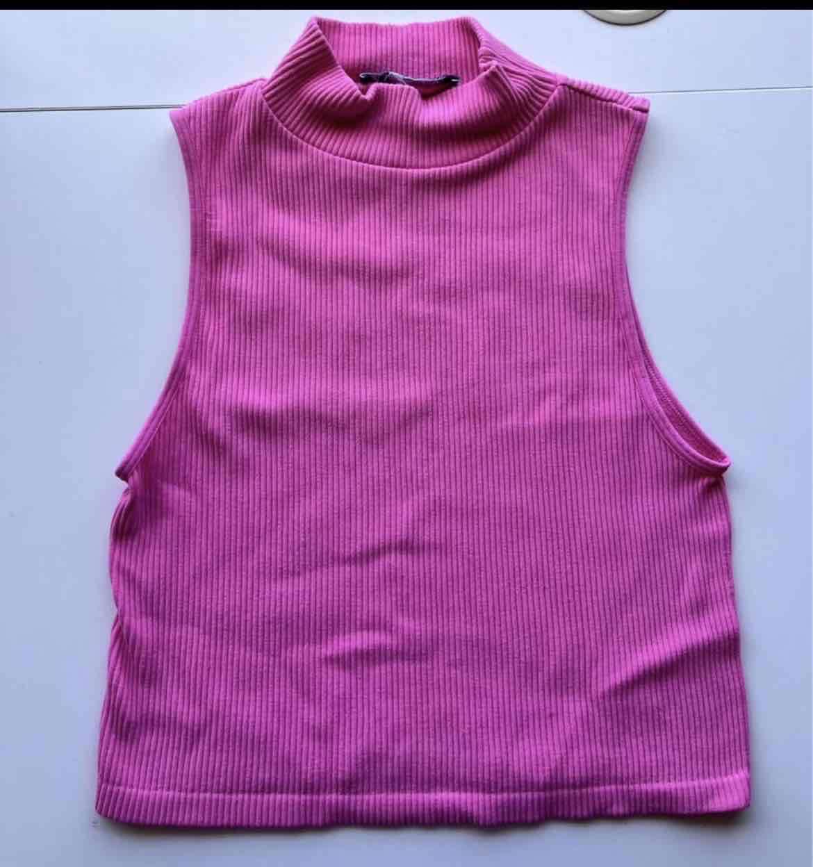 Polera ZARA sin mangas rosa fucsia