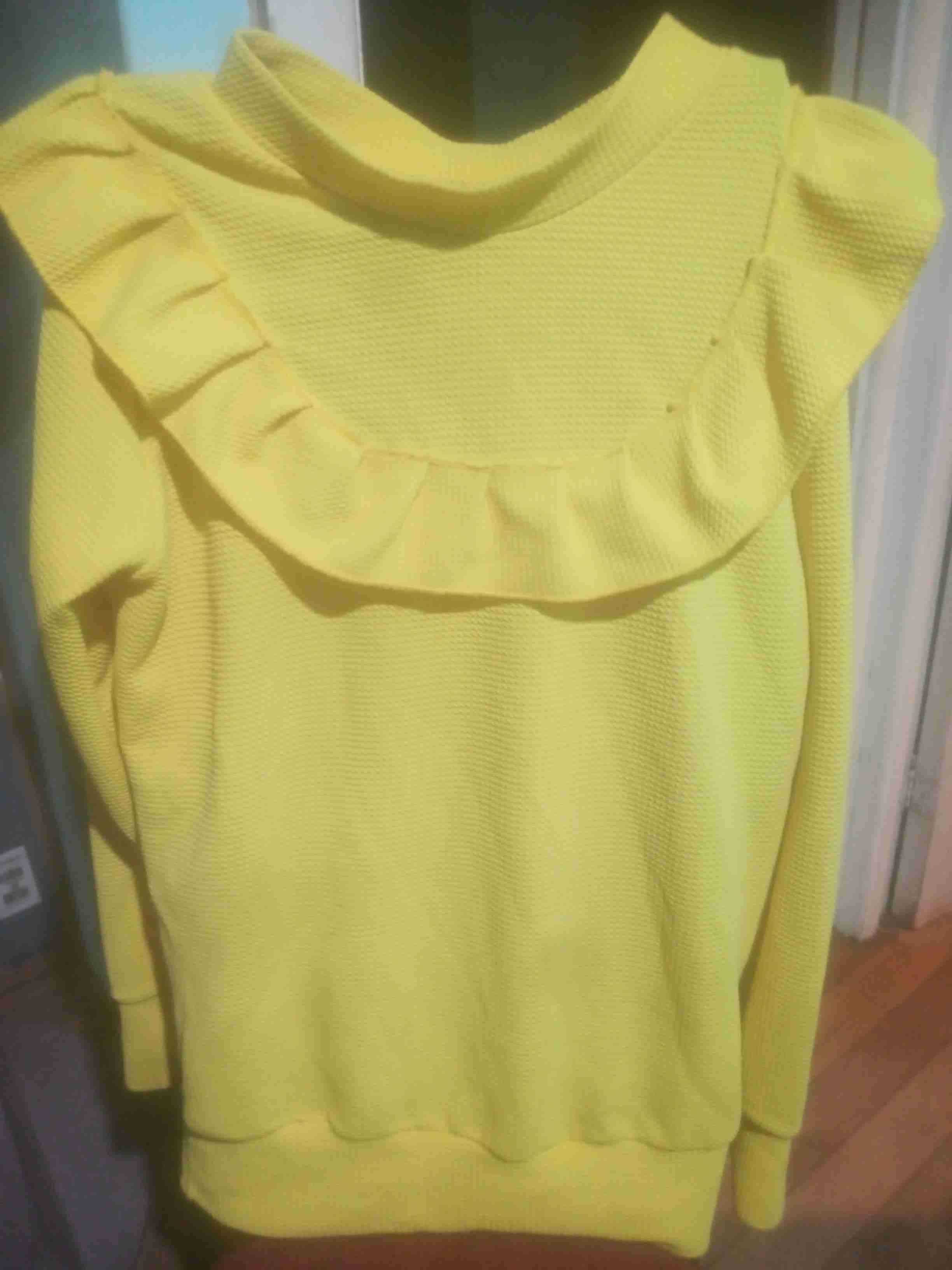 Poleron delgado, color amarillo vibrante con detalle de volantes en los hombros. En buen estado y perfecto para días frescos.