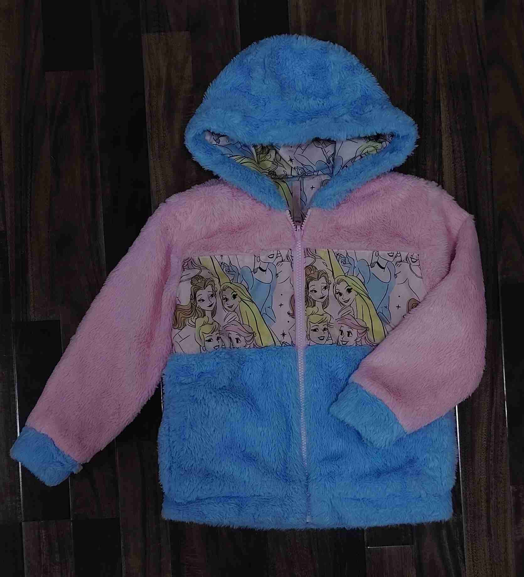Polerón suave y calientito para niñas, con diseño de princesas. Ideal para días fríos. Reversible por un lado chaqueta por el otro peludito