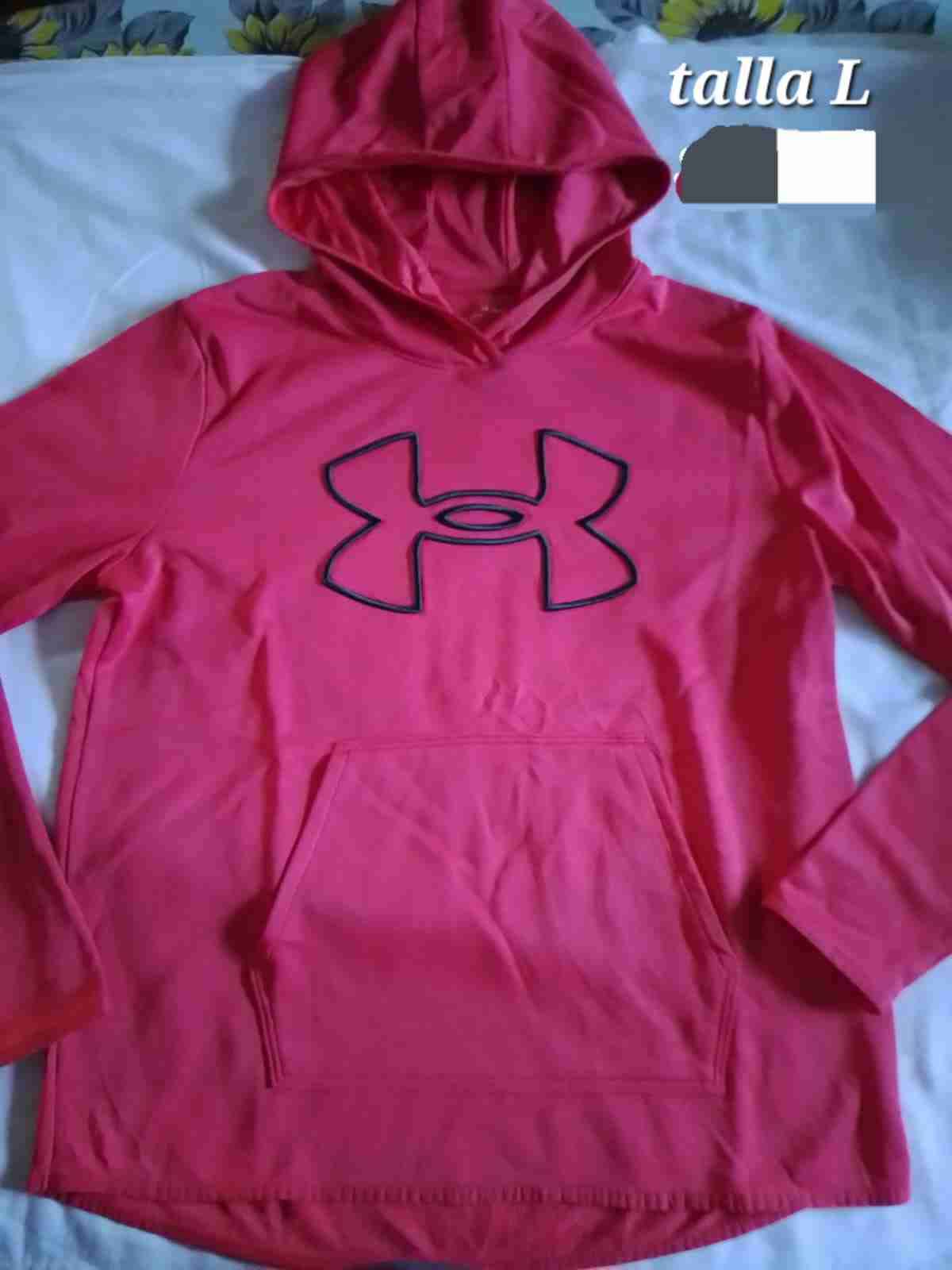 Poleron con capucha ideal para el deporte, en color rosado vibrante. En buen estado general, talla L.