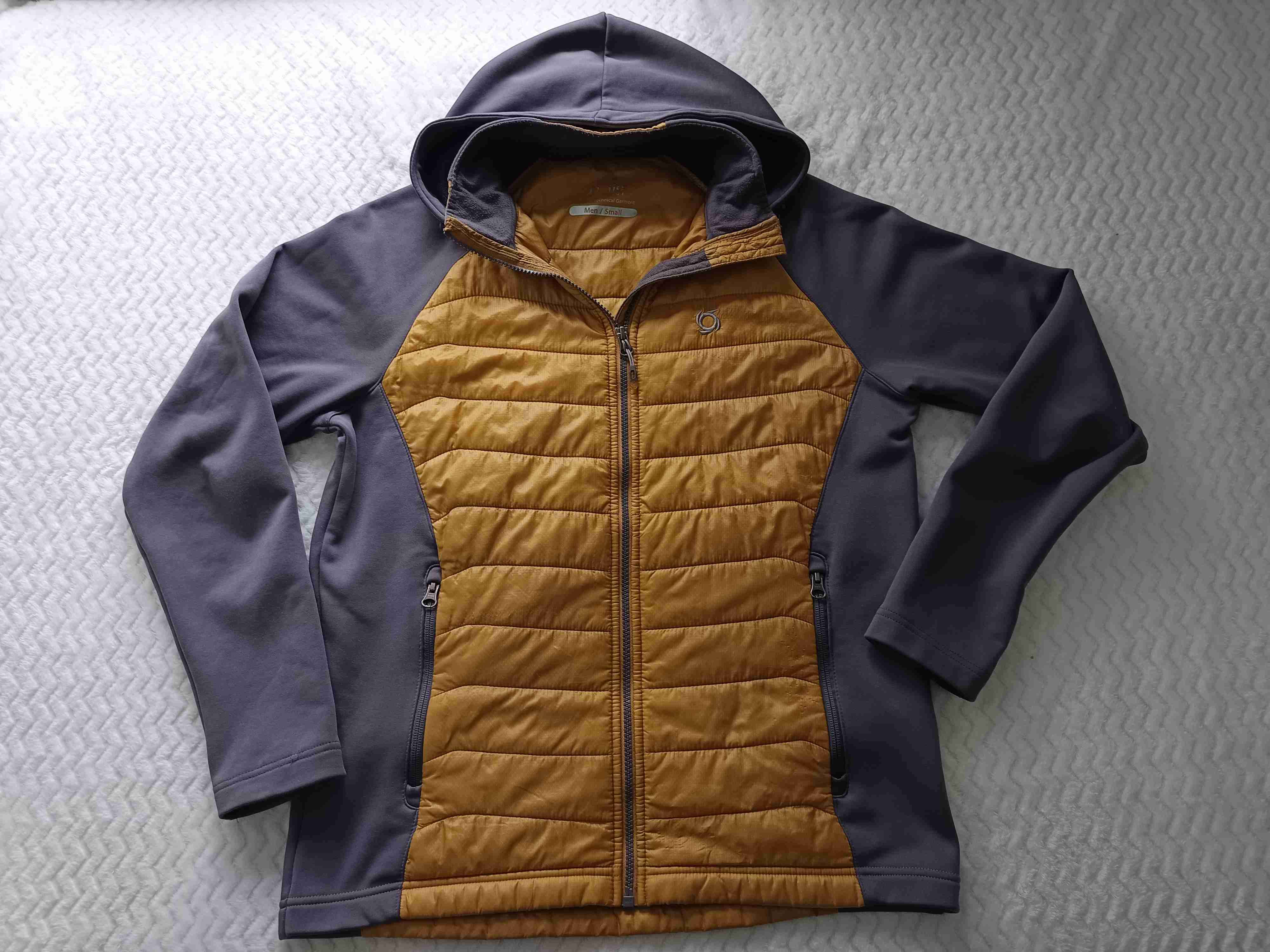 Chaqueta de diseño moderno en tonos gris y mostaza, ideal para el frío. En buen estado. Muy leves de detalles por poco uso, está impecable.