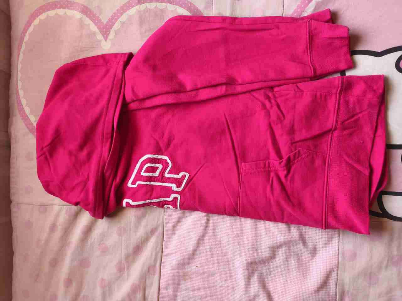 Polerón rosado de mujer con capucha y detalle bordado. En buen estado, ideal para días frescos