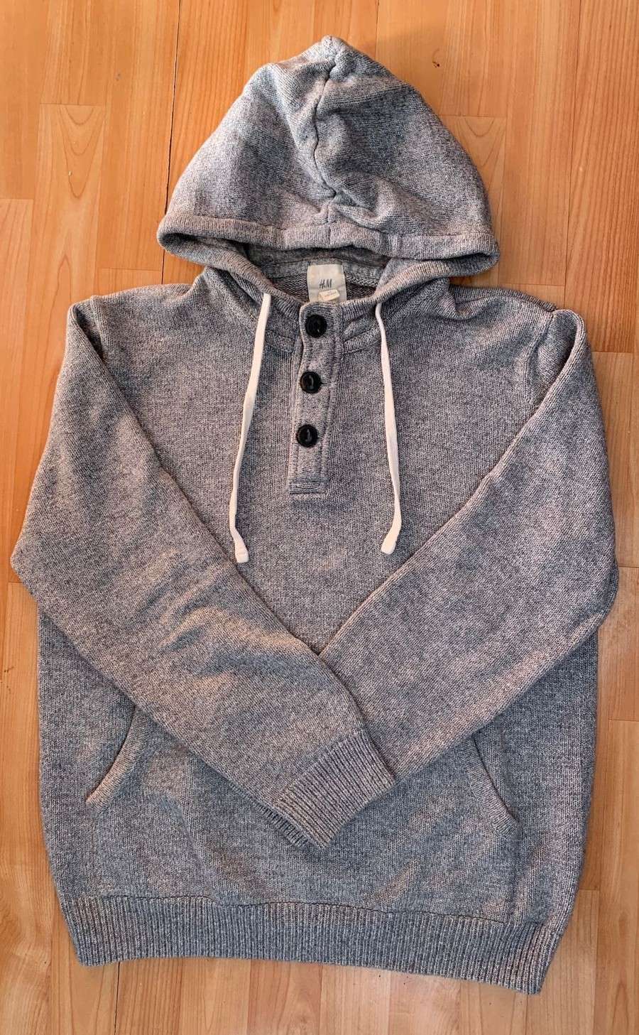 Polerón de hombre en color gris con capucha y botones. Ideal para días fríos, en buen estado. H&M talla L