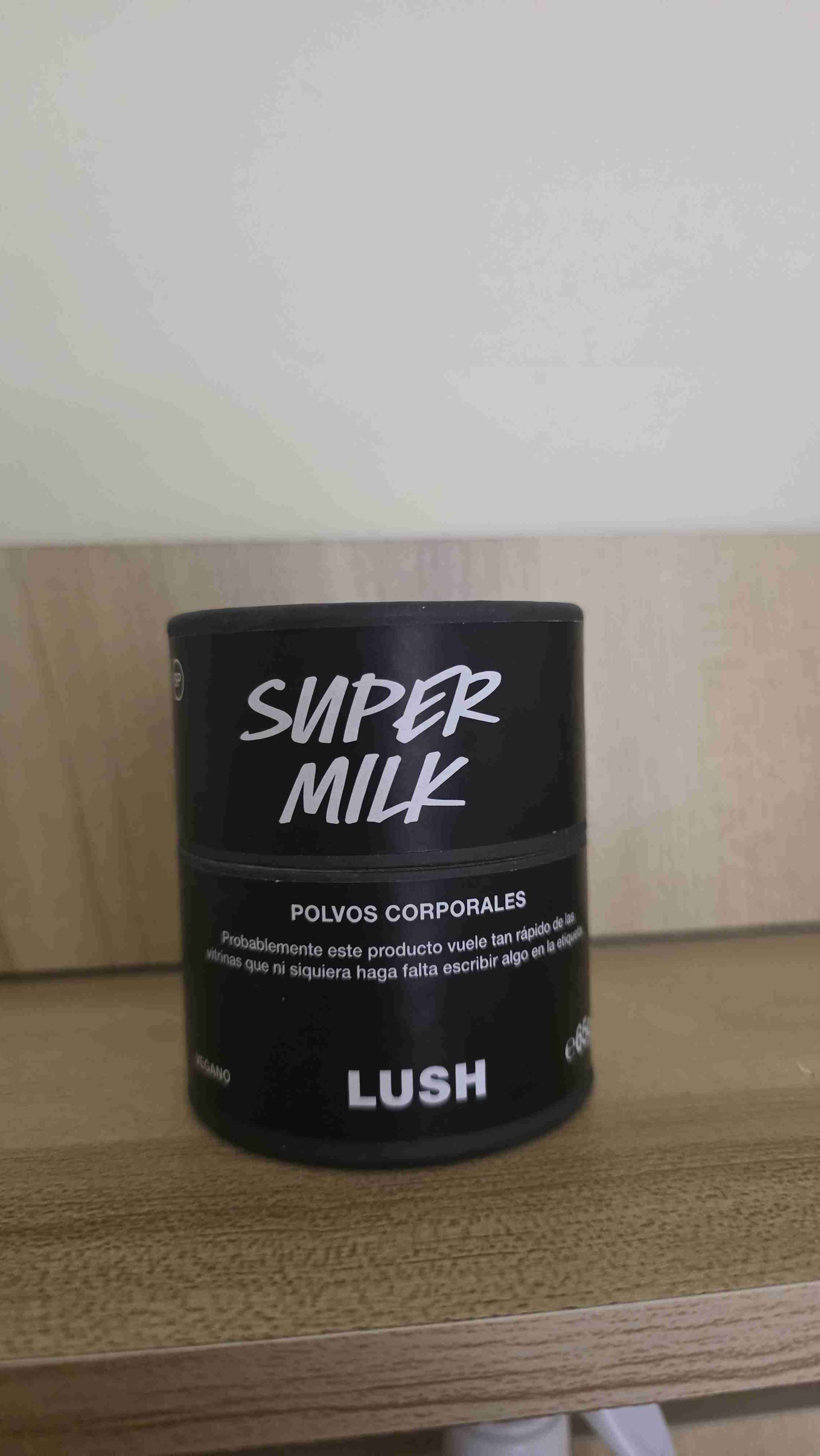Polvos corporales Lush con aroma a Super Milk. Sin uso pero con tapa abierta.