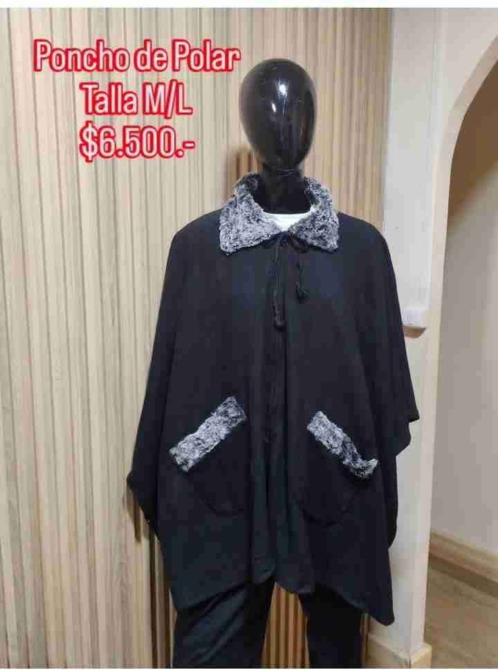 Poncho de polar negro con detalles grises, tipo piel ideal para el invierno. Talla M/L, en buen estado.