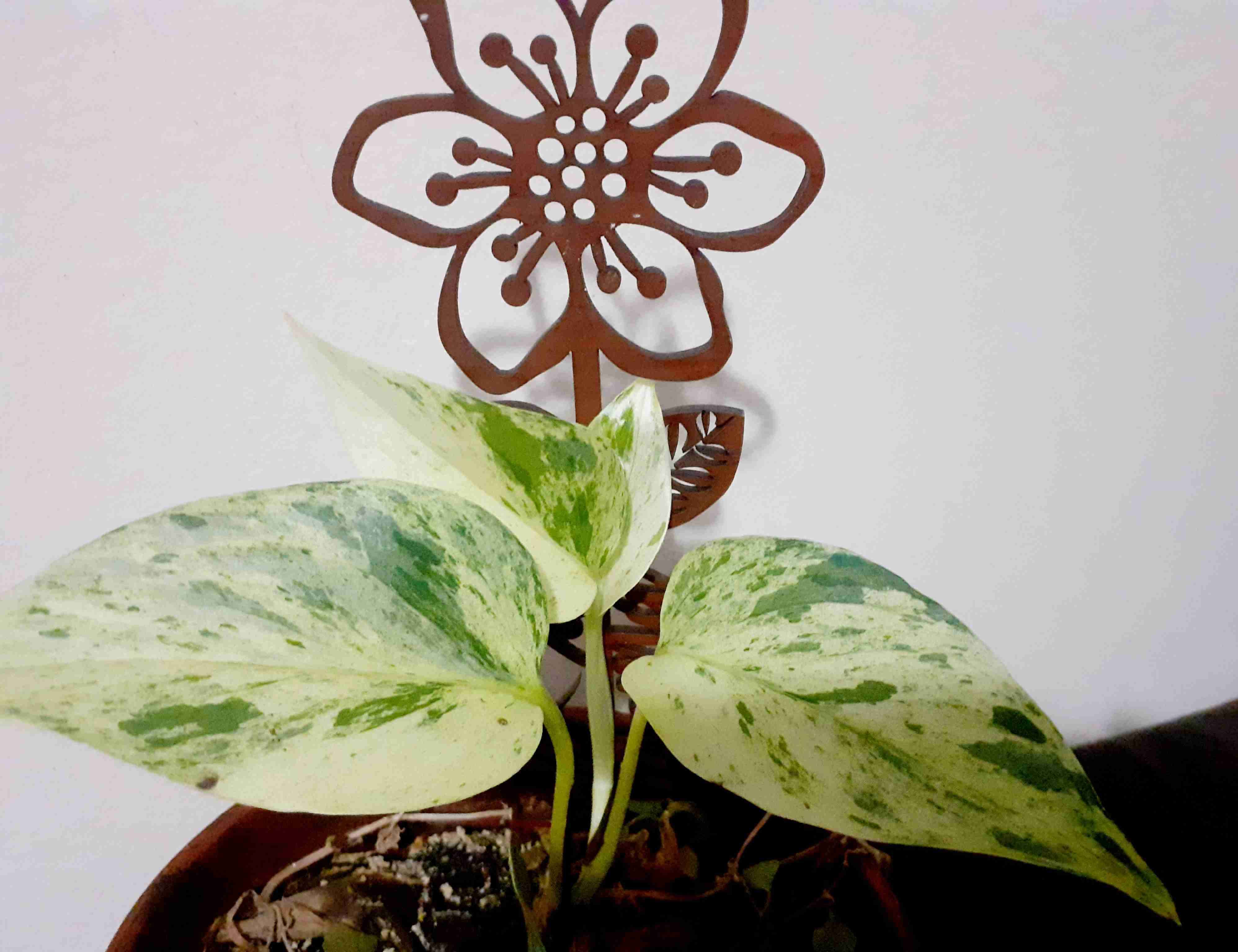 Pothus Snow y variegada en macetero en humus