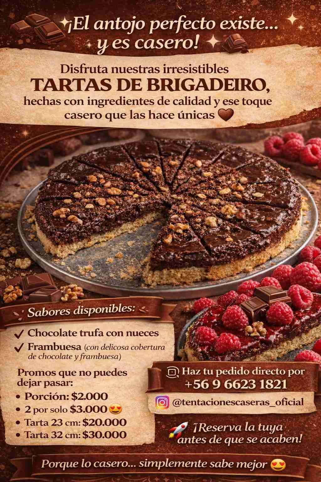 Tortas de chocolate Con trufa o frambuesas Los 32 cm están a 30,000 mil Los 23 cm están a 20,000 mil