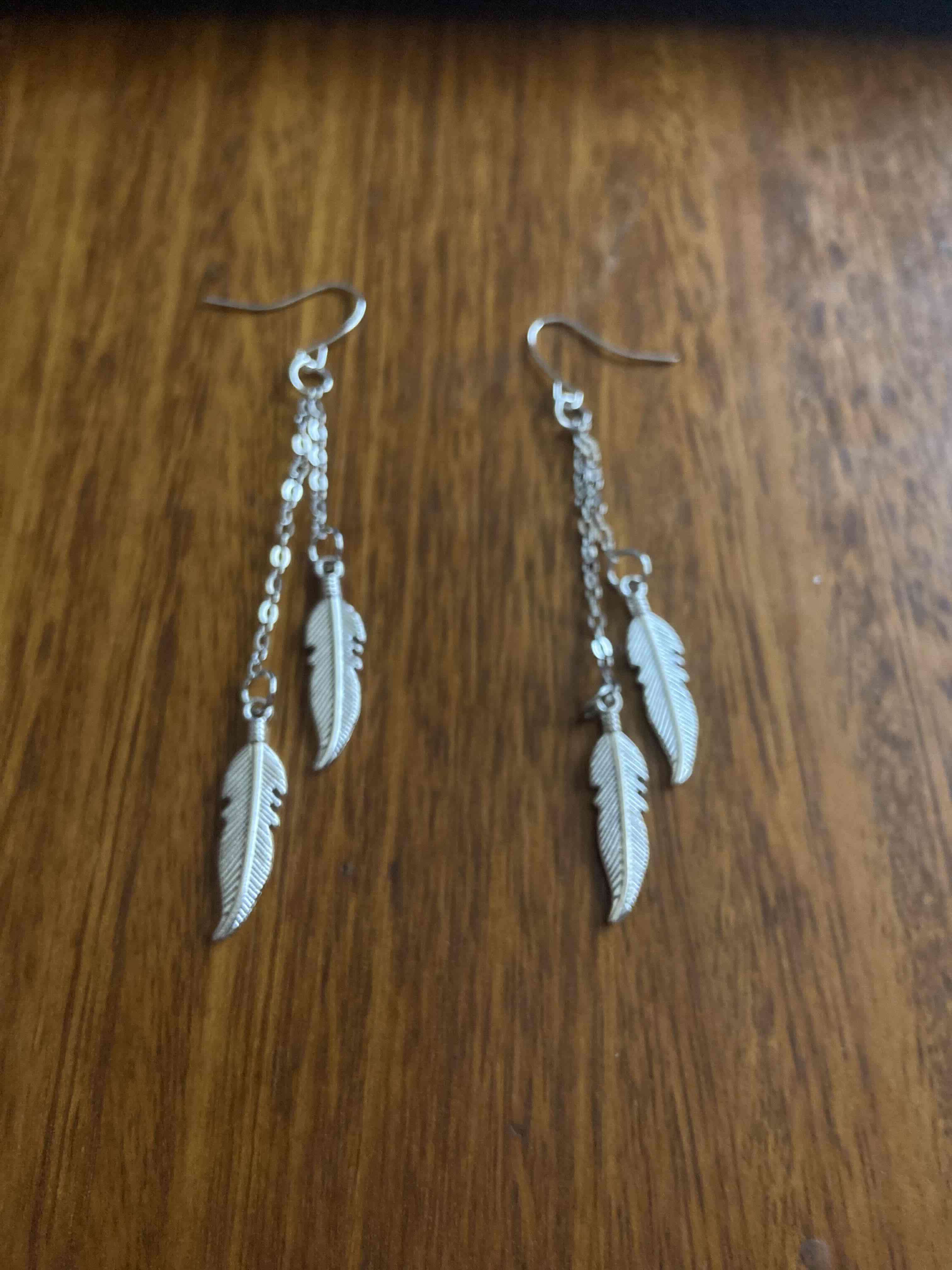 Elegantes aros colgantes con diseño de plumas. Perfectos para ocasiones especiales o uso diario. En buen estado.