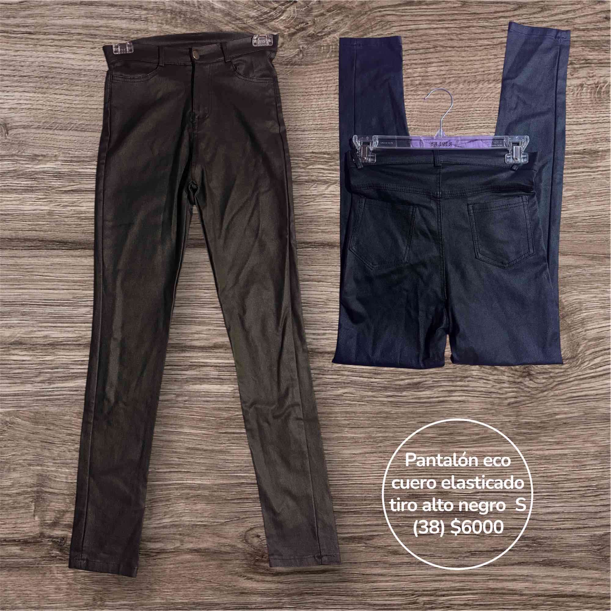 Pantalón de eco cuero elastizado en color negro, ideal para uso casual o salida nocturna. En buen estado, tiro alto para mayor comodidad.