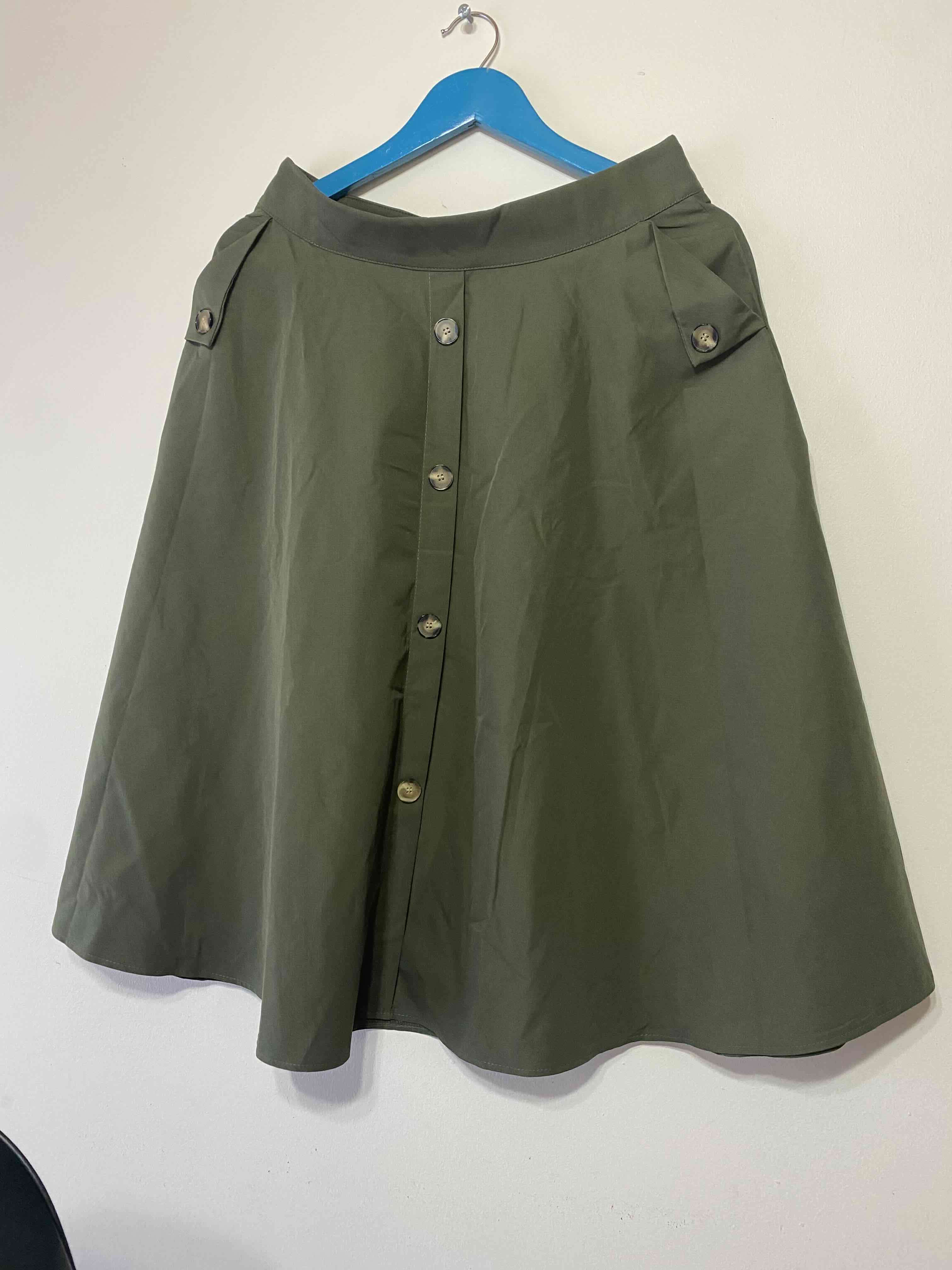 Falda de color verde en buen estado, con botones decorativos al frente. Ideal para el uso diario. Nueva Dice talla L pero es un M (80cm cintura)