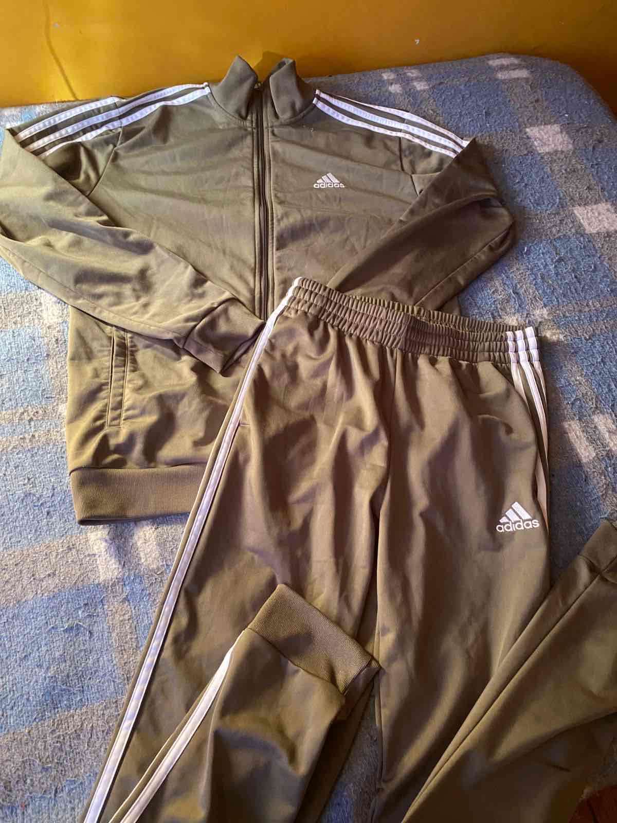 Conjunto deportivo verde Adidas con chaqueta y pantalón. Ideal para actividades al aire libre. En buen estado. Talla s