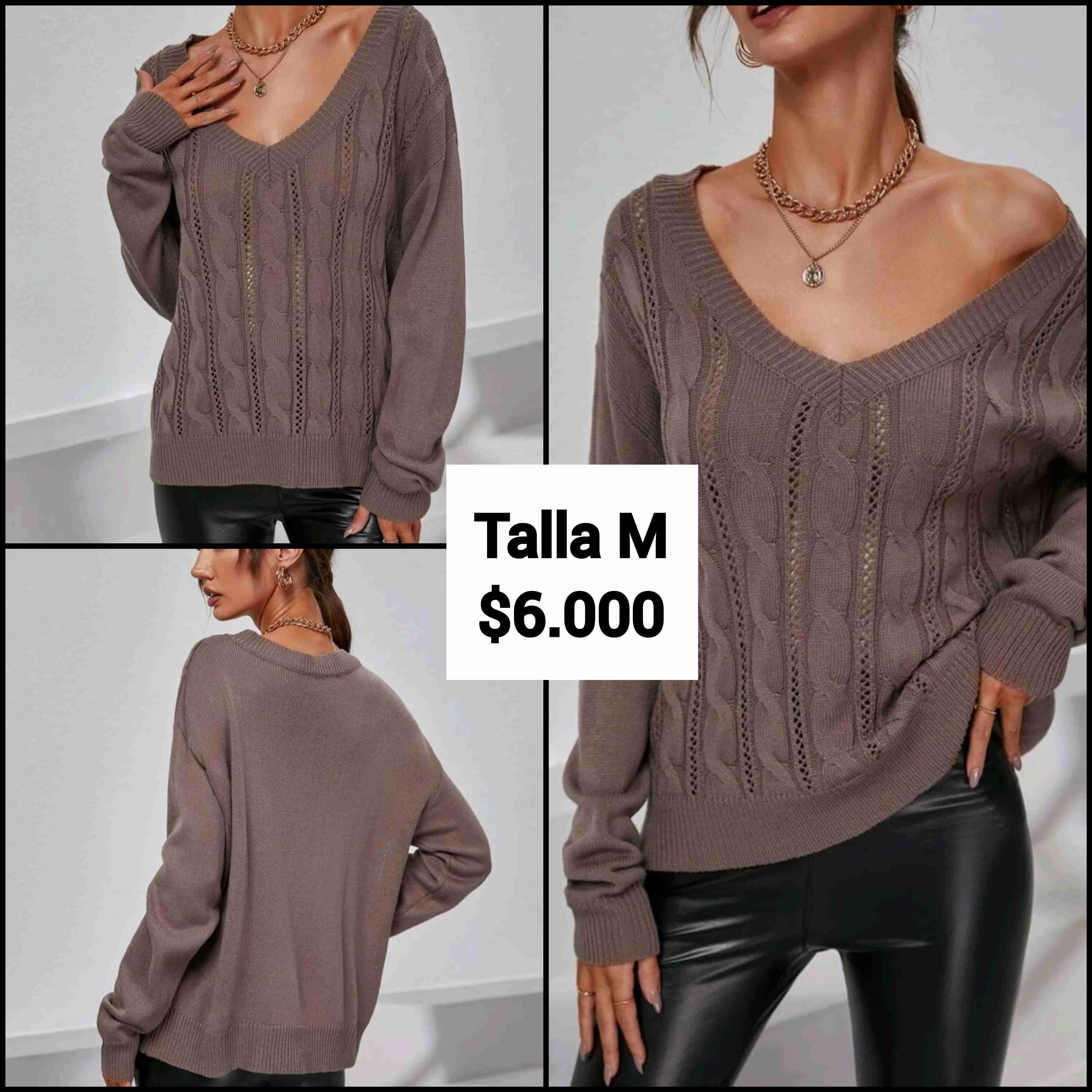 Suéter de mujer en color café, estilo casual con diseño de tejido. Ideal para el otoño e invierno. NUEVO.