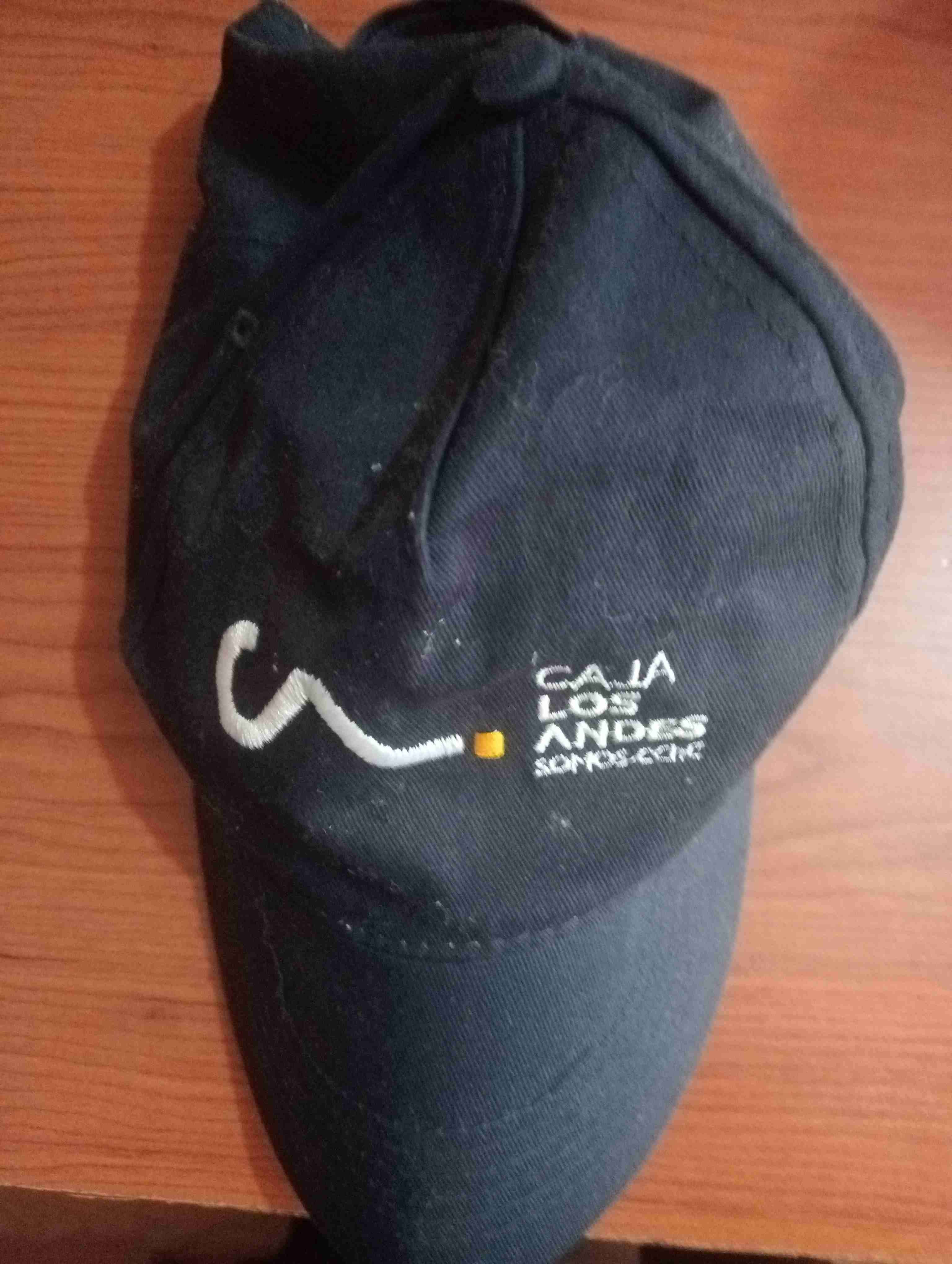 Gorra negra con logo de Caja Los Andes, en buen estado. Ideal para uso casual.