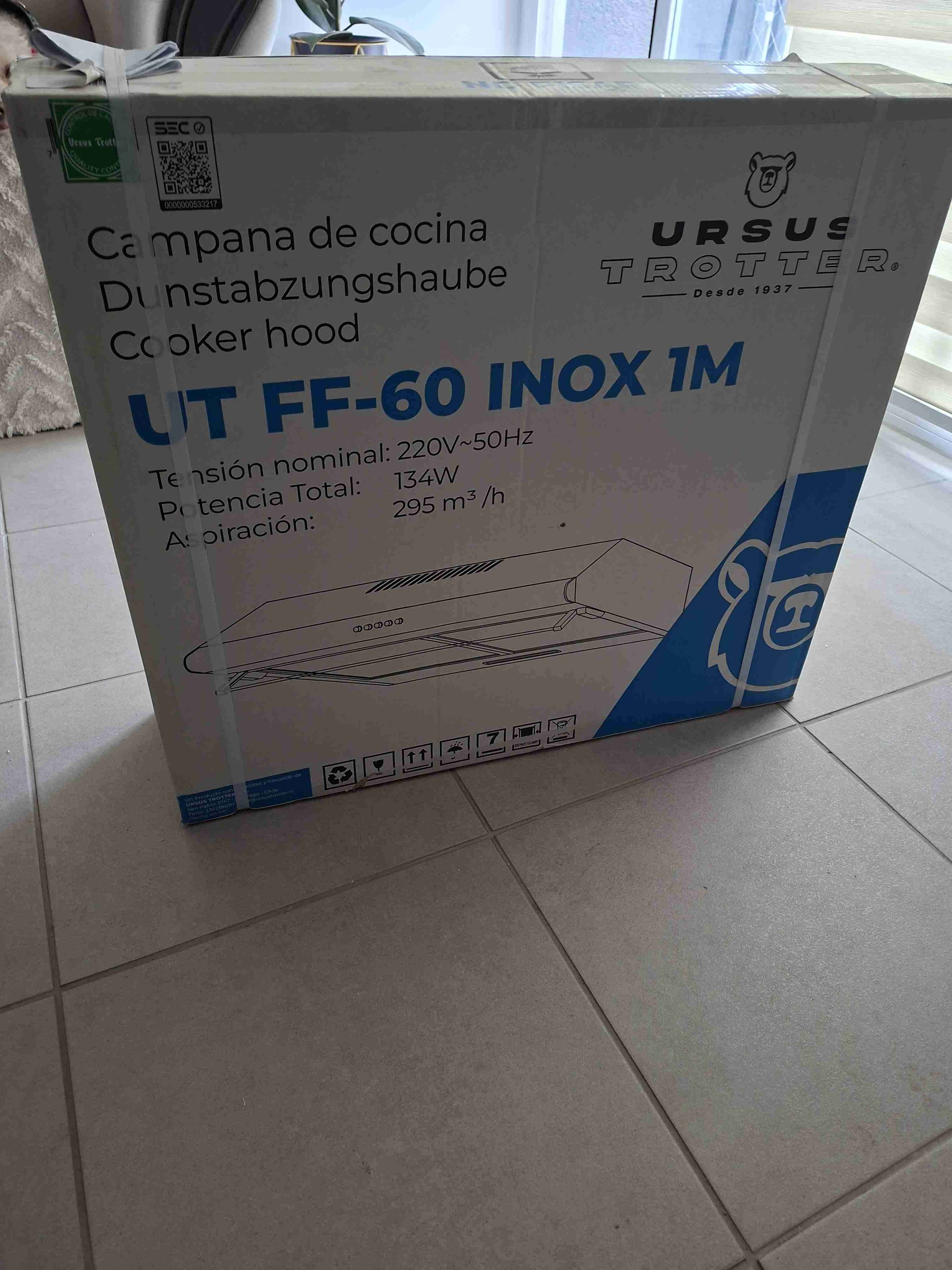 Campana extractora de acero inoxidable, modelo UT FF-60. Ideal para una ventilación eficiente en la cocina.