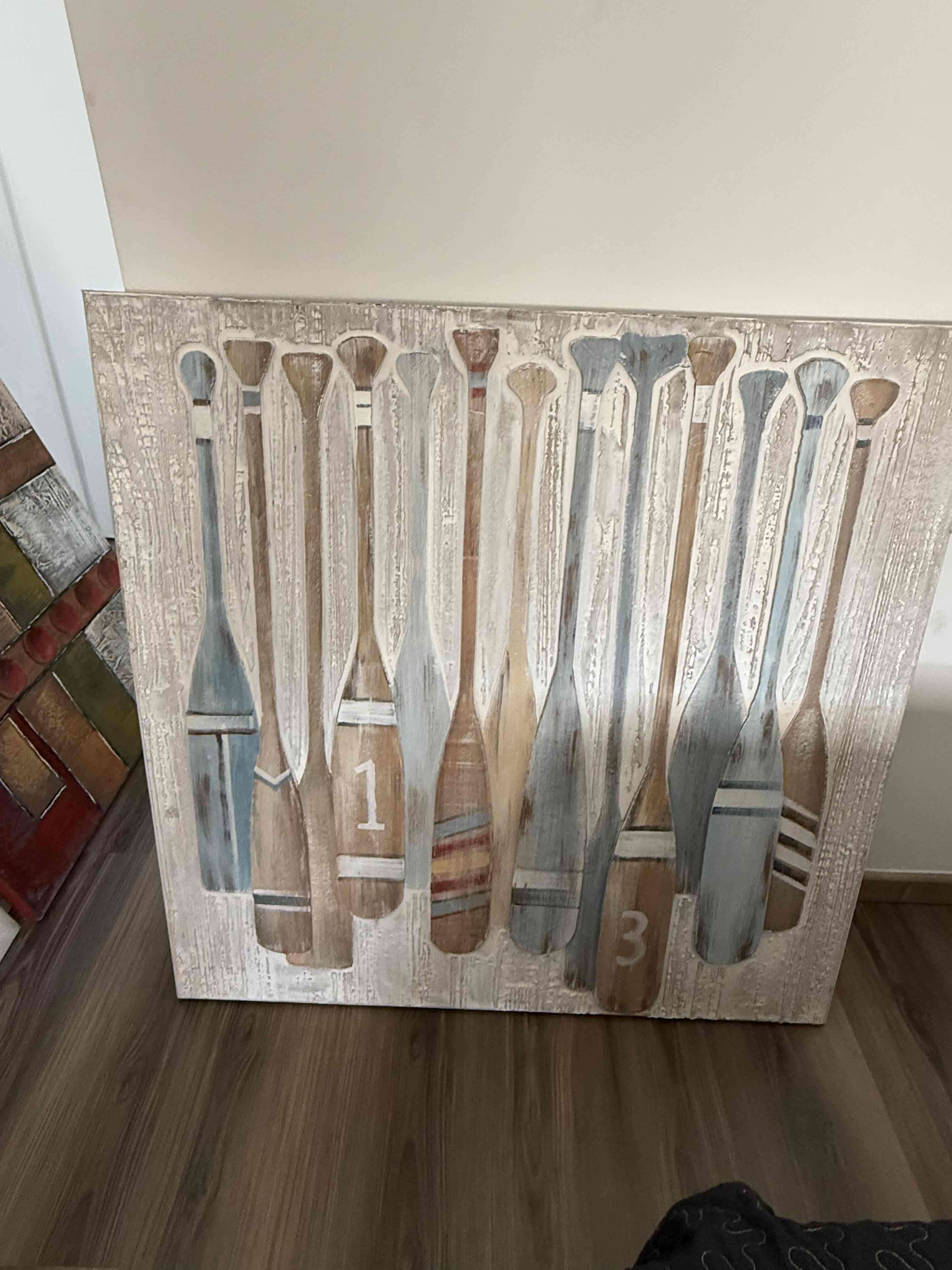 Cuadro de estilo náutico con diseño de remos en tonos neutros. Ideal para darle un toque especial a tu sala o estudio.