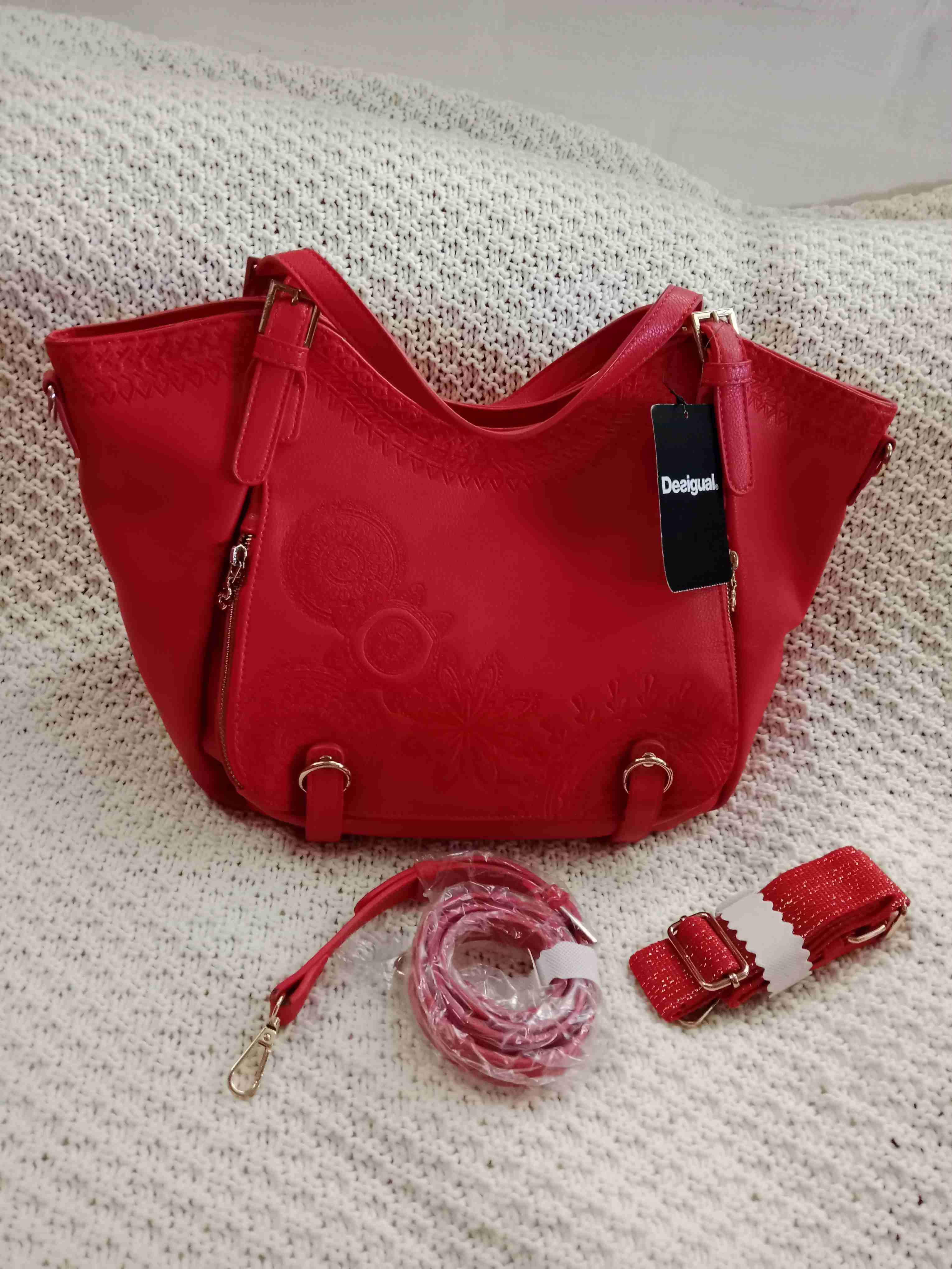 Bolso rojo Desigual, diseño elegante y nuevo con etiquetas. Ideal para uso diario o salidas especiales. Esta nueva ningún uso Con diseño bordado