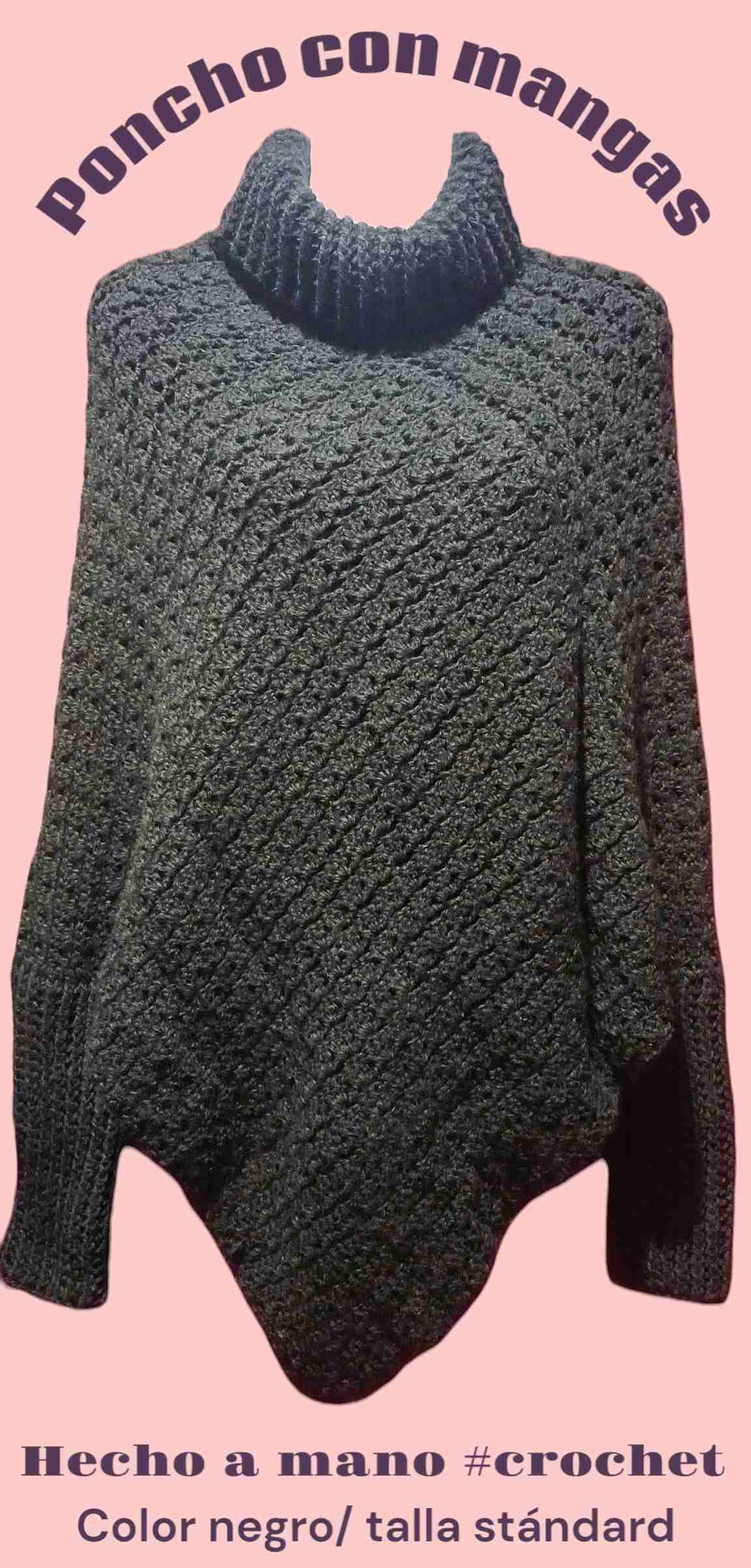 Poncho hecho a mano en crochet, color negro con mangas. Ideal para el invierno. Producto nuevo. Talla standard.