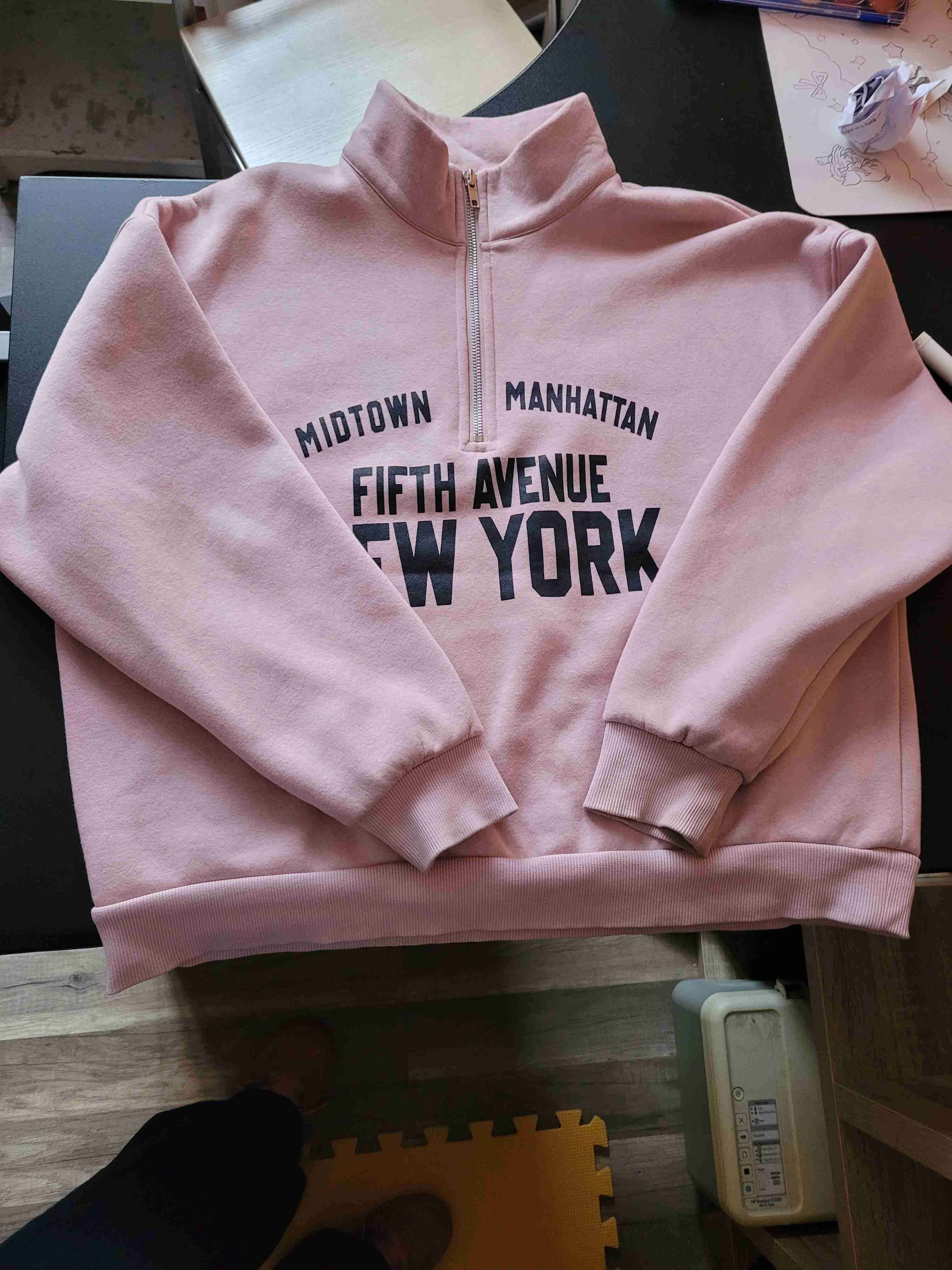 Polerón suave de color rosado con cierre frontal y estampado de letras. Tiene poco uso y fue comprado hace poco así que esta en buen estado