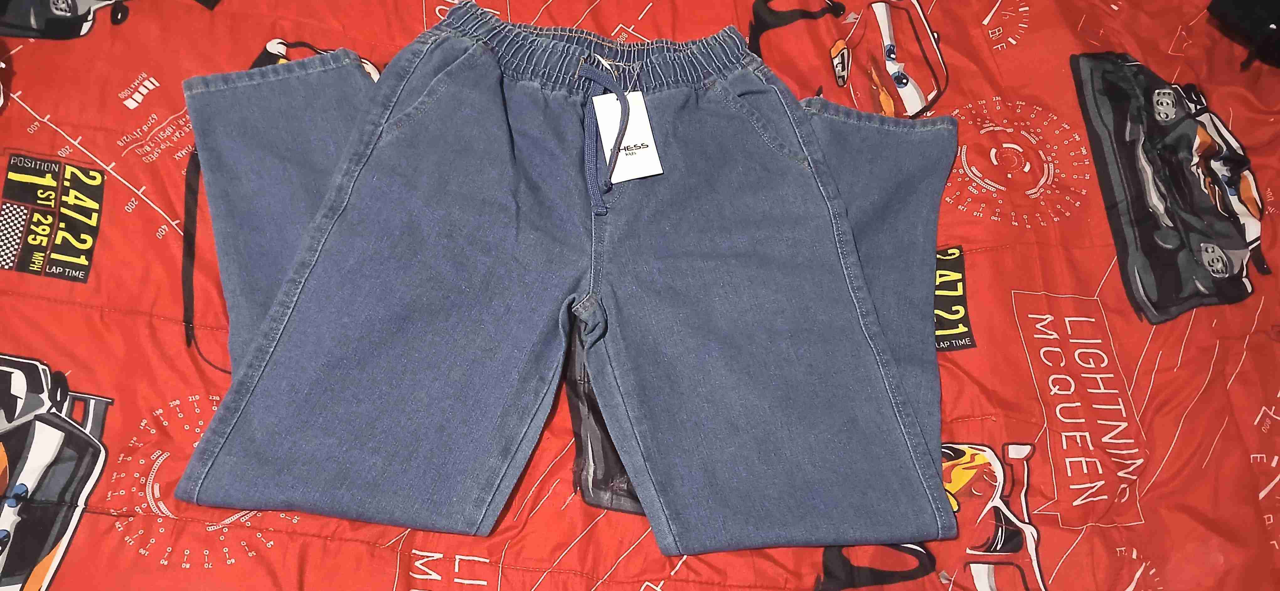 Cómodos pantalones de mezclilla azul con pretina elástica. Ideales para uso casual. En buen estado.