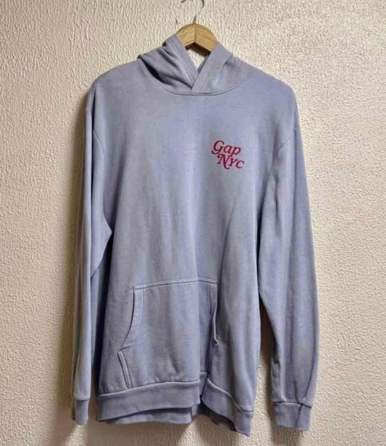 Polerón gris con capucha, ideal para días frescos. En buen estado, con diseño Gap Nyc.