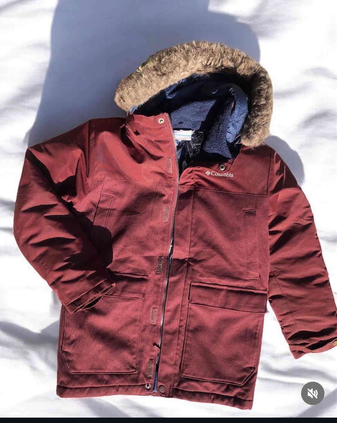 Parka Columbia roja con capucha