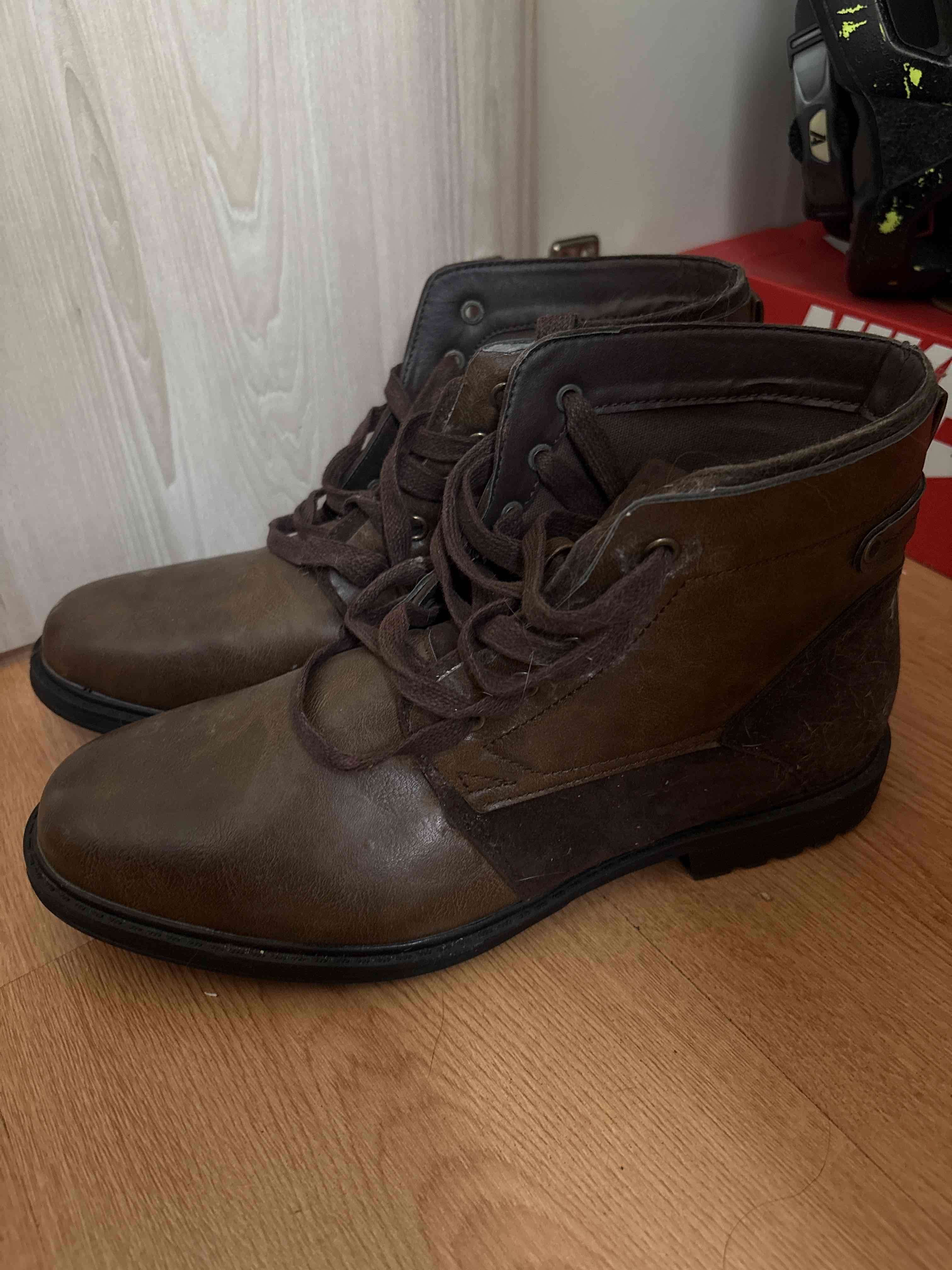 Botas de cuero marrón en buen estado, ideales para uso diario. Presentan desgaste leve.