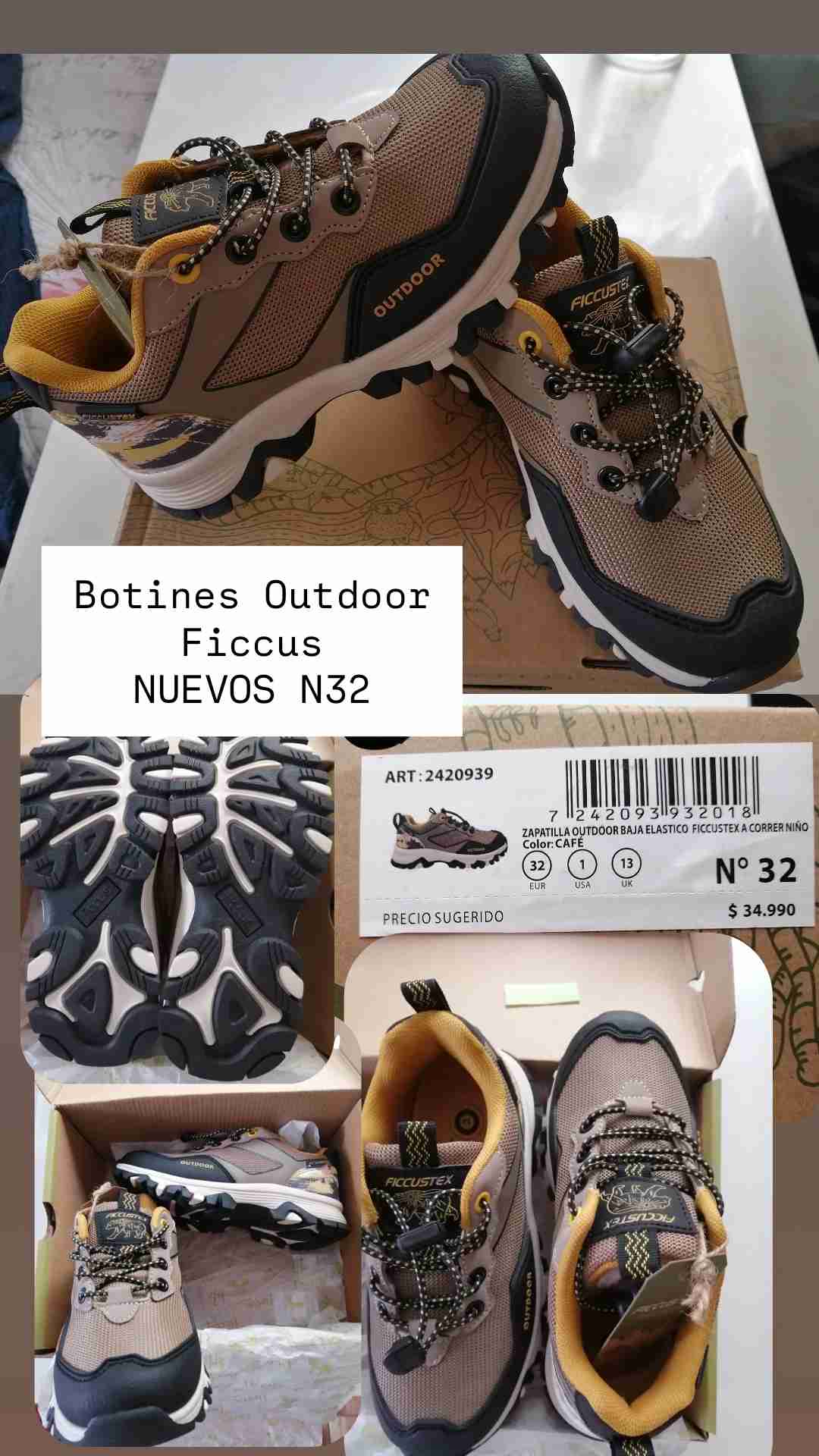 Botines outdoor Ficcustex en color café, ideales para aventuras. Estado nuevo, N°32.
