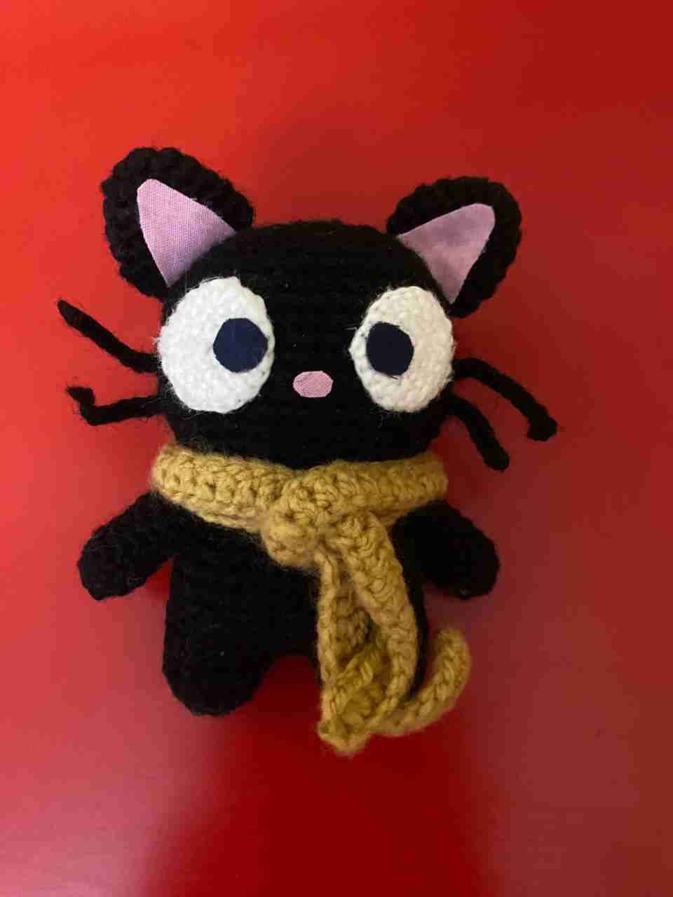 Peluche de gato negro con bufanda , perfecto para decorar o regalar.