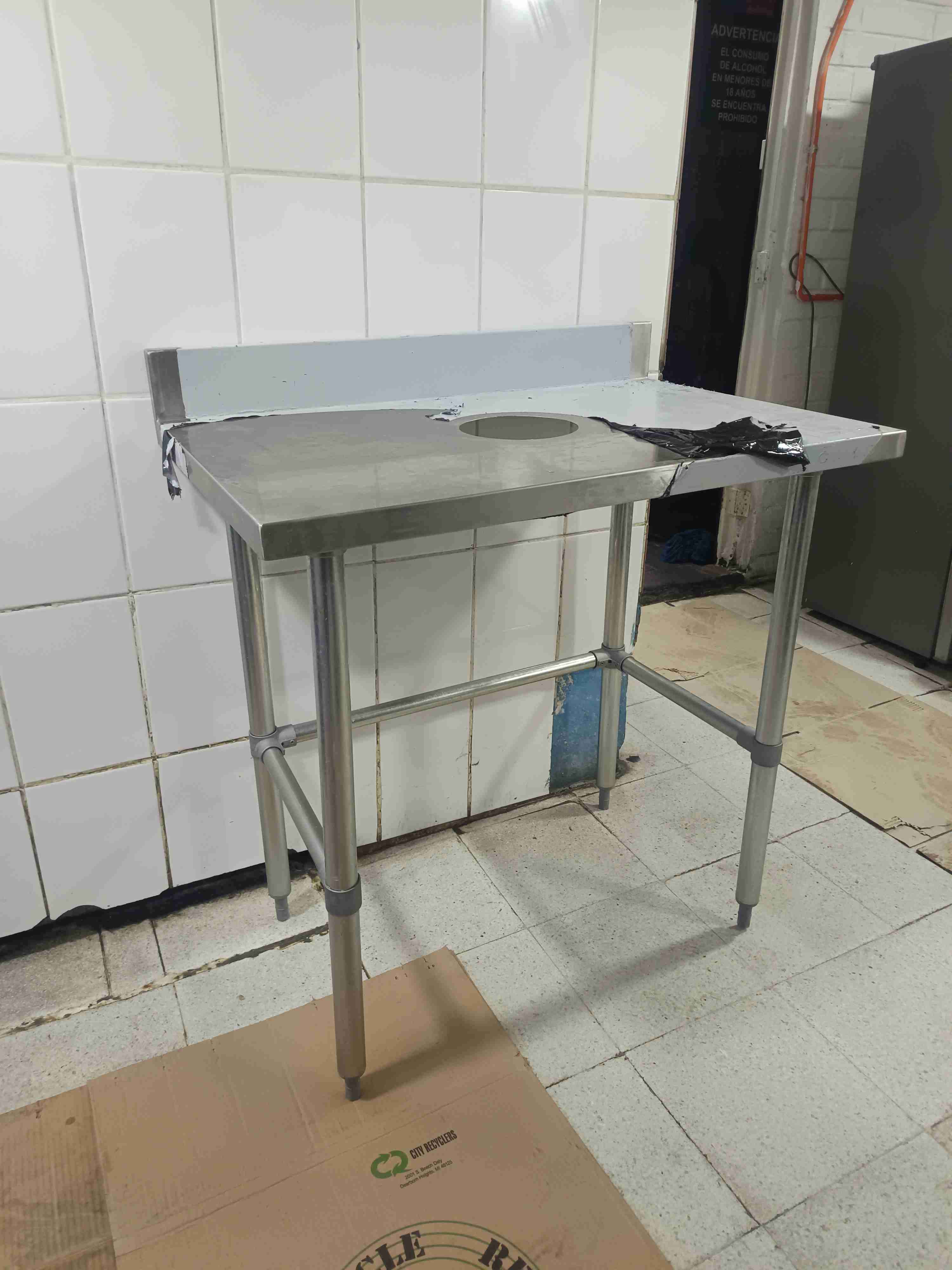 Mesones de acero inoxidable, Meson más pequeño de 90x60x 85 Cms con patas regulables hasta llegar a 90 cms de alto, y mesón más grande 140x60x85( aún con sus plásticos que se usaron con ellos puestos) ideal para cocinas industriales o restaurantes. Presenta signos de uso pero está como nuevo solo 3 semanas de uso tengo facturas que acreditan el producto,