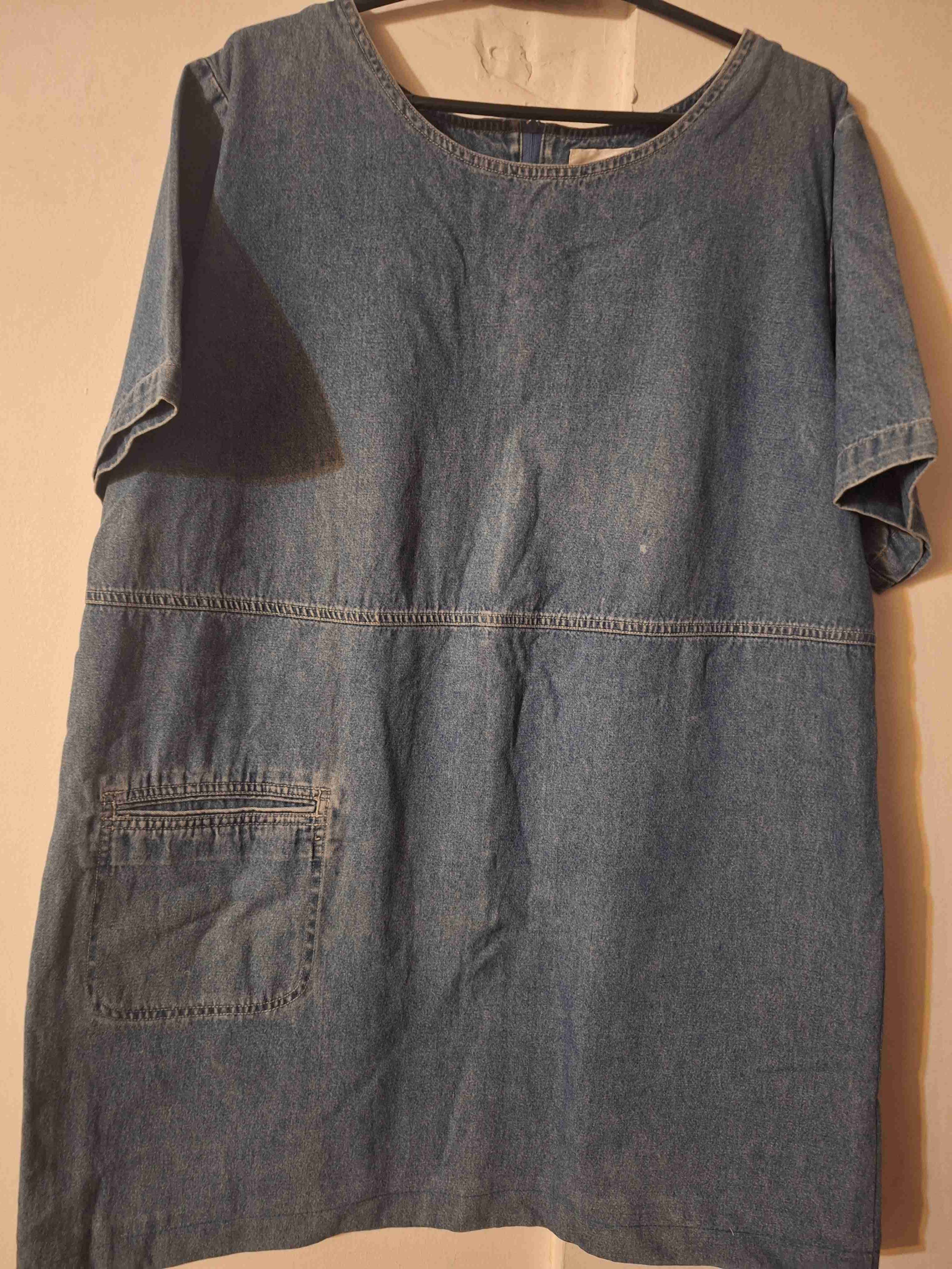 Cómodo vestido de mezclilla en color azul, perfecto para el día a día. Buen estado general con bolsillo práctico al frente.