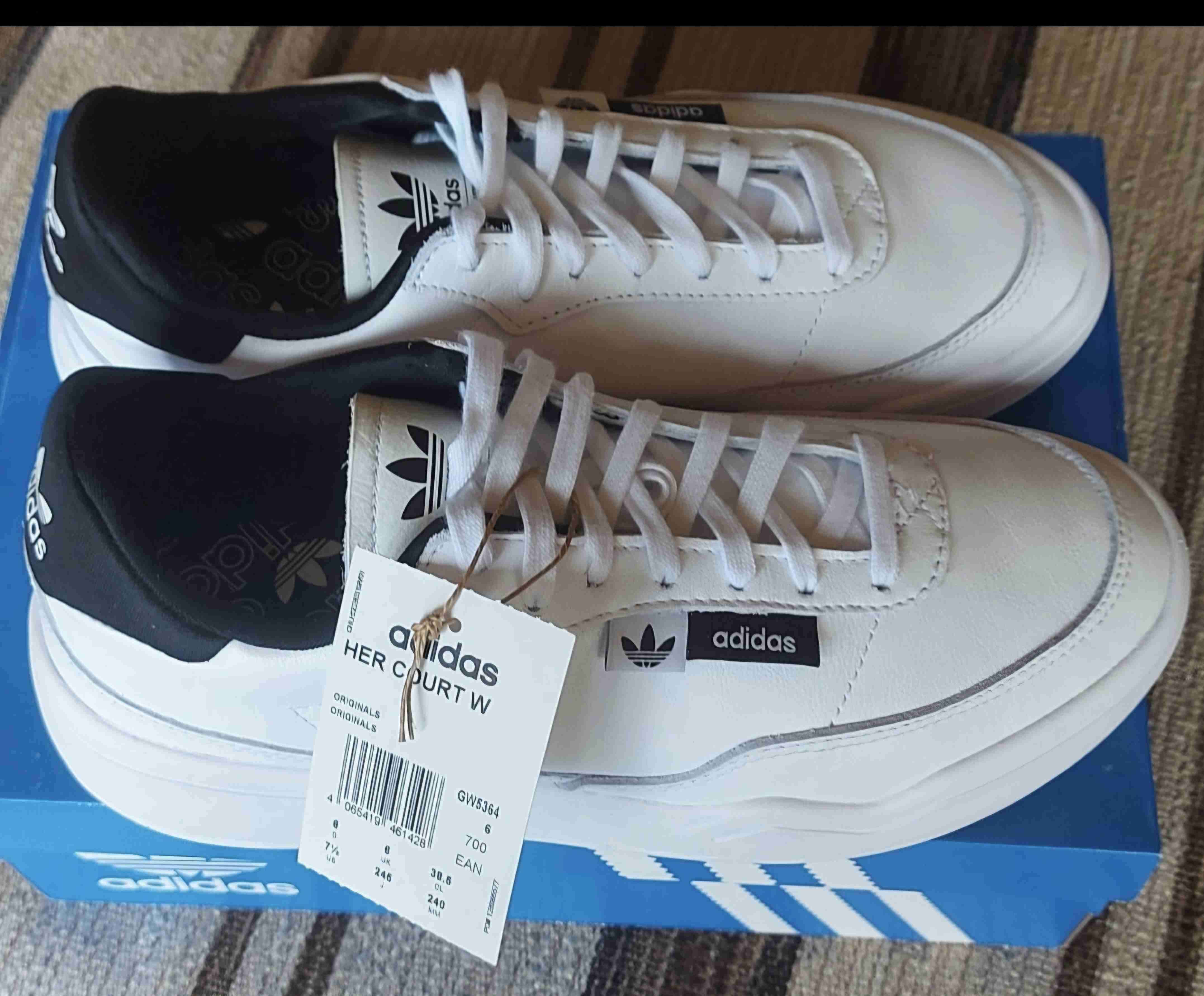 Zapatillas blancas Adidas Her Court W, estilo clásico y urbano. Nuevas con etiqueta, ideales para uso casual. Talla 37.5, 24.5cm.