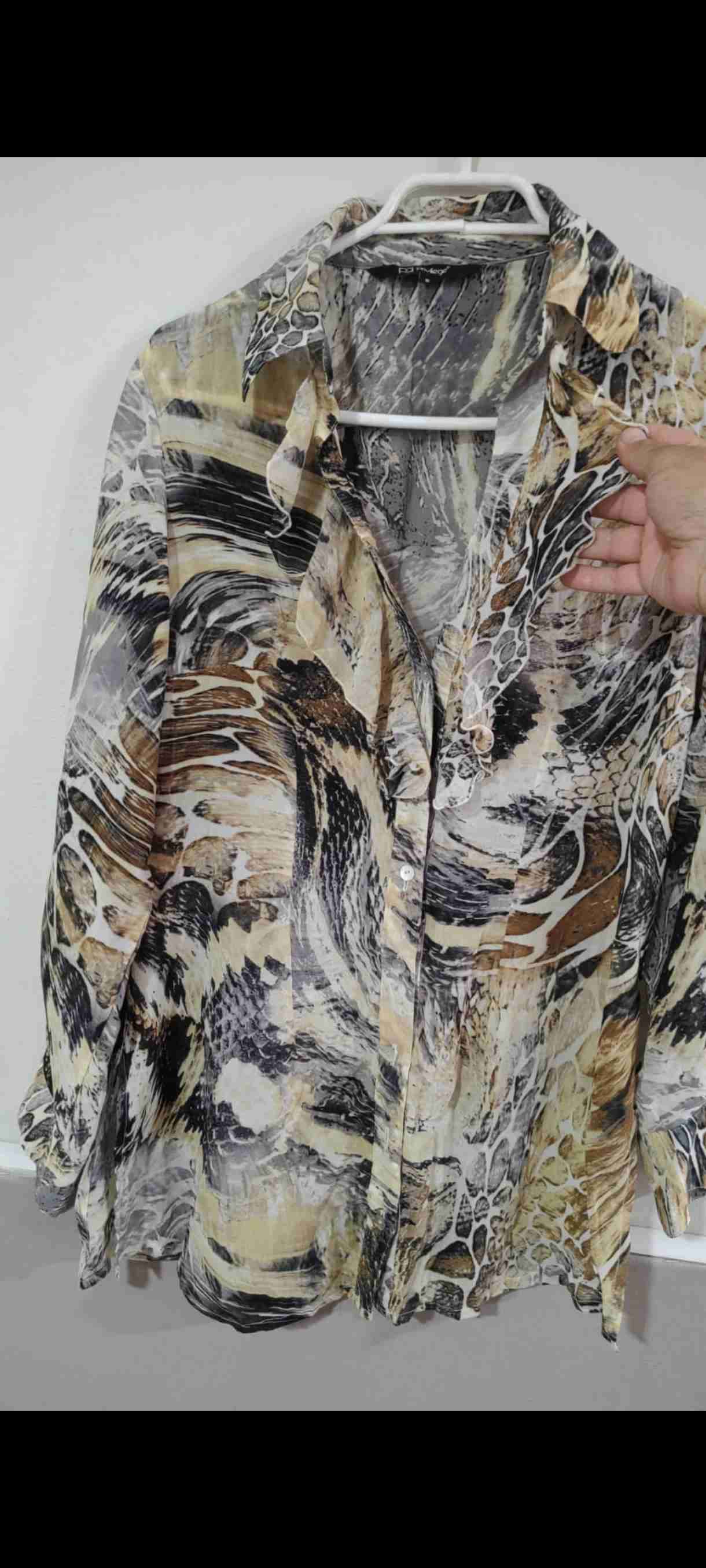 Blusa de mujer con estampado abstracto en tonos tierra. Ideal para un look casual o semiformal. En excelente estado.